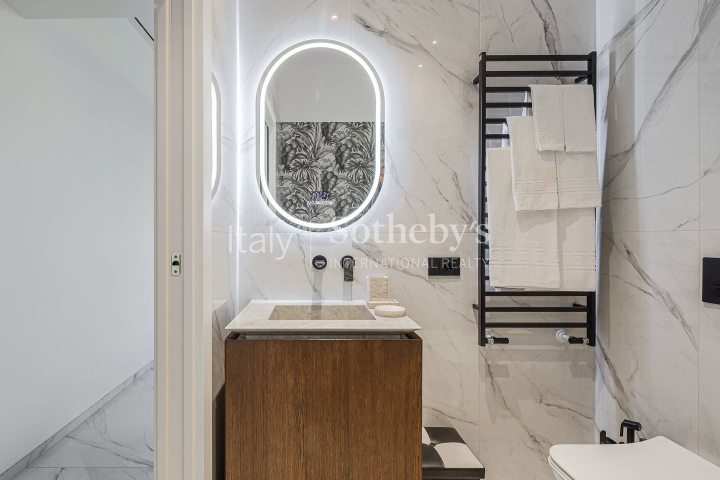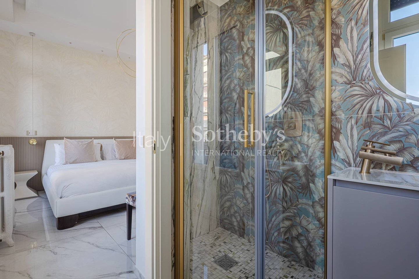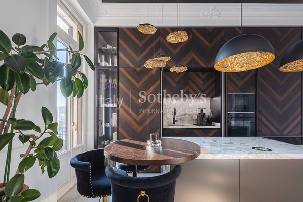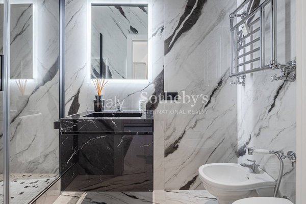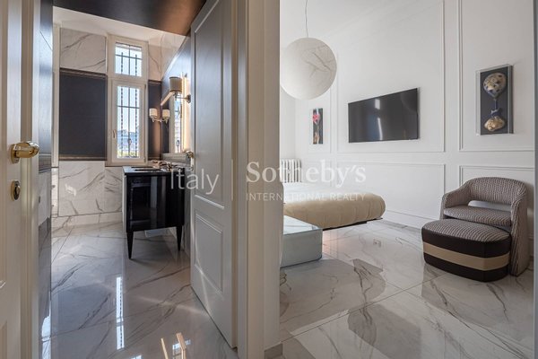 Die Ausstattungen sind durchgängig hochwertig und sorgfältig gewählt, mit Marmorböden, edlen Wandverkleidungen sowie Bädern mit wandhängenden Sanitärelementen und abgestimmten Armaturen. Die Renovierung folgt einem zeitgemäßen Konzept und bewahrt zugleich Harmonie und Kontinuität zwischen den Räumen.