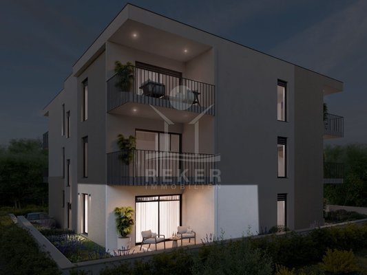 In Brodarica entsteht dieser Neubau in einer ruhigen Straße. Alles Wichtige für den Alltag erreichen Sie schnell. Der Strand ist nur rund 500 m entfernt. Geplant sind elf Wohnungen auf drei Ebenen: Erdgeschoss, 1. Obergeschoss und 2. Obergeschoss. Das Haus verfügt über zwei Treppenhäuser und ist klar organisiert. Der Bau begann im November 2025. Fertigstellung und Inbetriebnahme sind für Sommer 2027 vorgesehen.