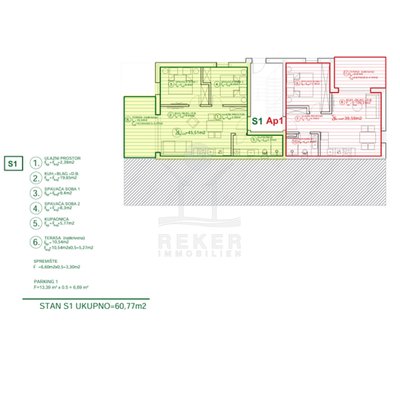 Diese Wohnung bietet zwei Schlafzimmer und eine funktionale Raumaufteilung. Der Wohnbereich führt direkt auf die überdachte Terrasse mit 10,54 m². Ein Garagenstellplatz sorgt für zusätzlichen Komfort. Die Nähe zum Meer ergänzt das Gesamtangebot