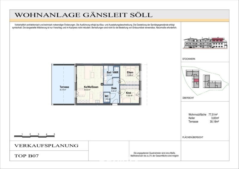 Mit einer Wohnnutzfläche von rund 77,51 m² sowie einer beeindruckenden Terrasse mit rund 60 m² eröffnet diese Penthousewohnung großzügige Wohnräume und atemberaubende Ausblicke auf die Tiroler Bergwelt