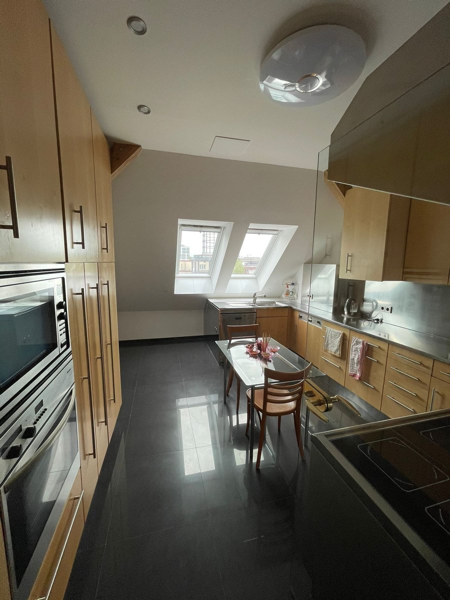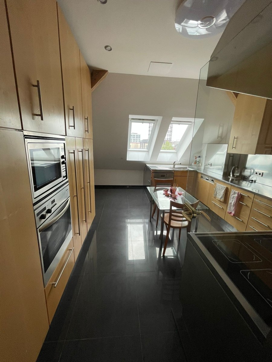Für ein perfektes Raumklima zu jeder Jahreszeit sorgen eine moderne Fußbodenheizung sowie eine Klimaanlage. Ein besonderes Highlight ist die großzügige Dachterrasse mit einem spektakulären Blick auf den Gasometer und die Berliner Skyline. Die beeindruckende Deckenhöhe von bis zu 9 Metern verleiht der Wohnung ein außergewöhnliches, offenes Raumgefühl, während eine Galerie zusätzlichen Wohnraum schafft.