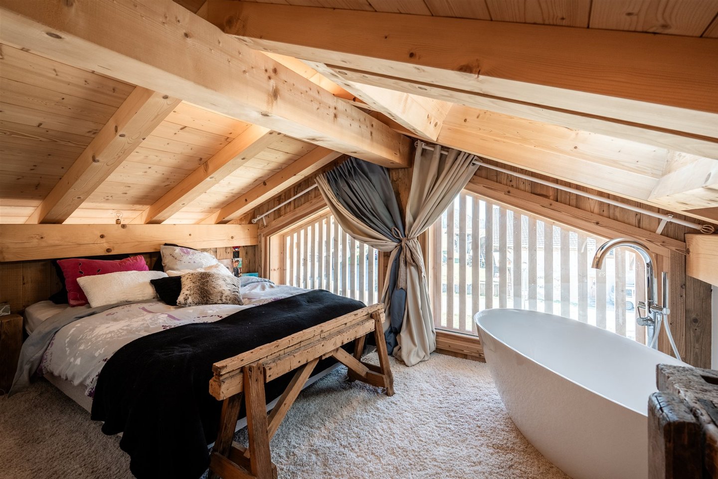 Unter dem Dach wurde eine Empore in eine Master-Suite mit Ankleidezimmer, Bad und WC umgewandelt.