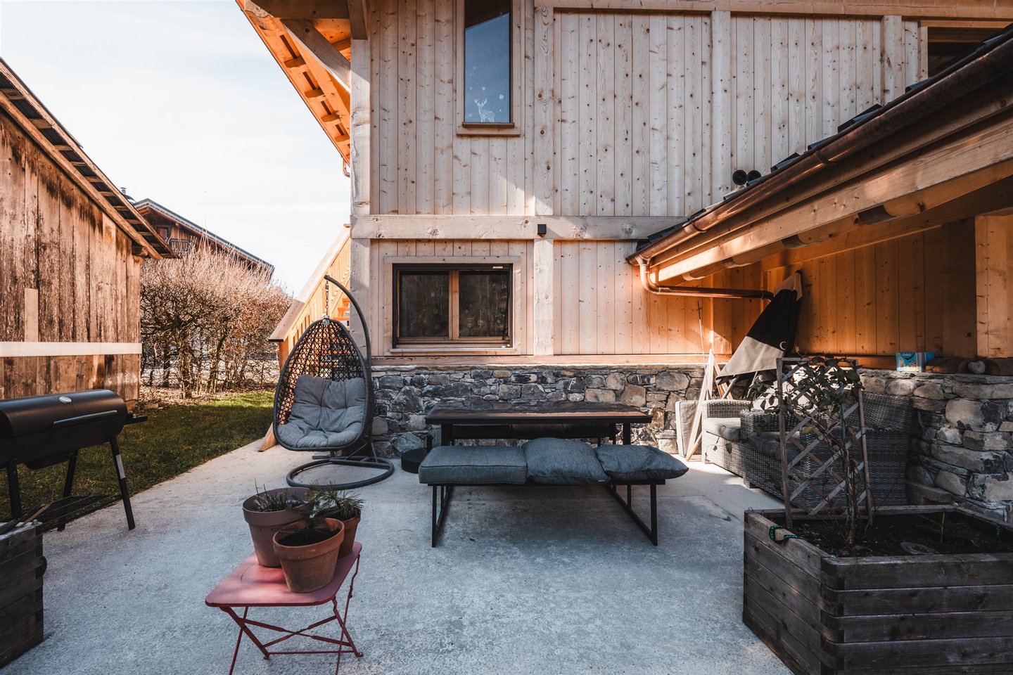 Dieses Chalet verbindet modernen Komfort mit Bergcharme und eignet sich ideal, um das Leben in den Bergen mit bester Ausrichtung zu genießen. Es wurde 2022 erbaut und verwendet hochwertige Materialien wie Stein Innen und Außen, Altholz, echtes Parkett und einen imposanten Mont-Blanc-Granit-Kamin.