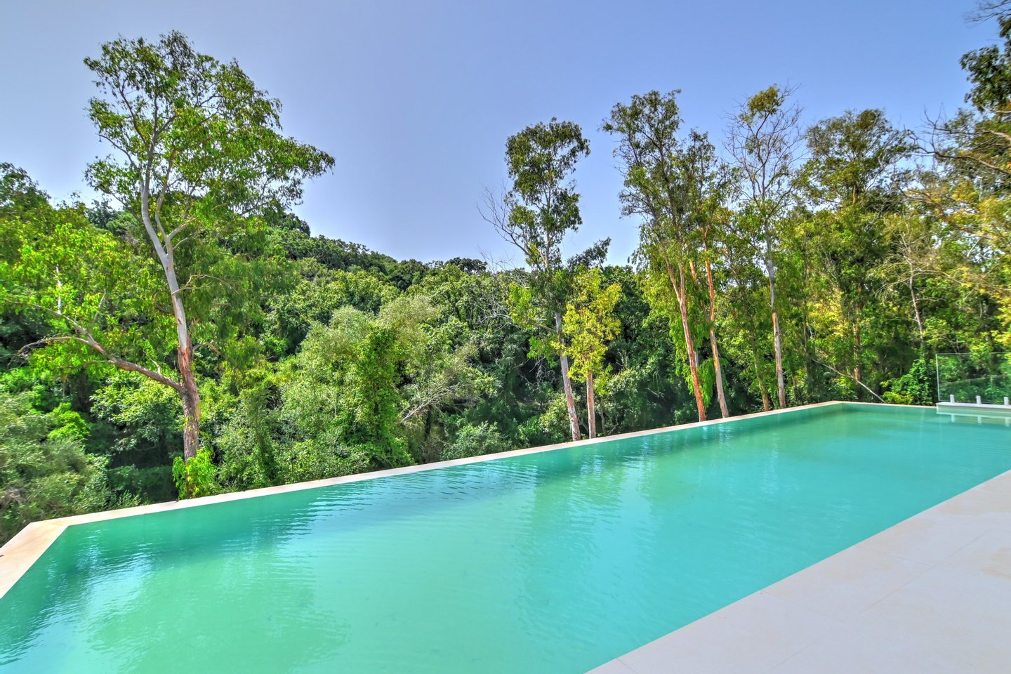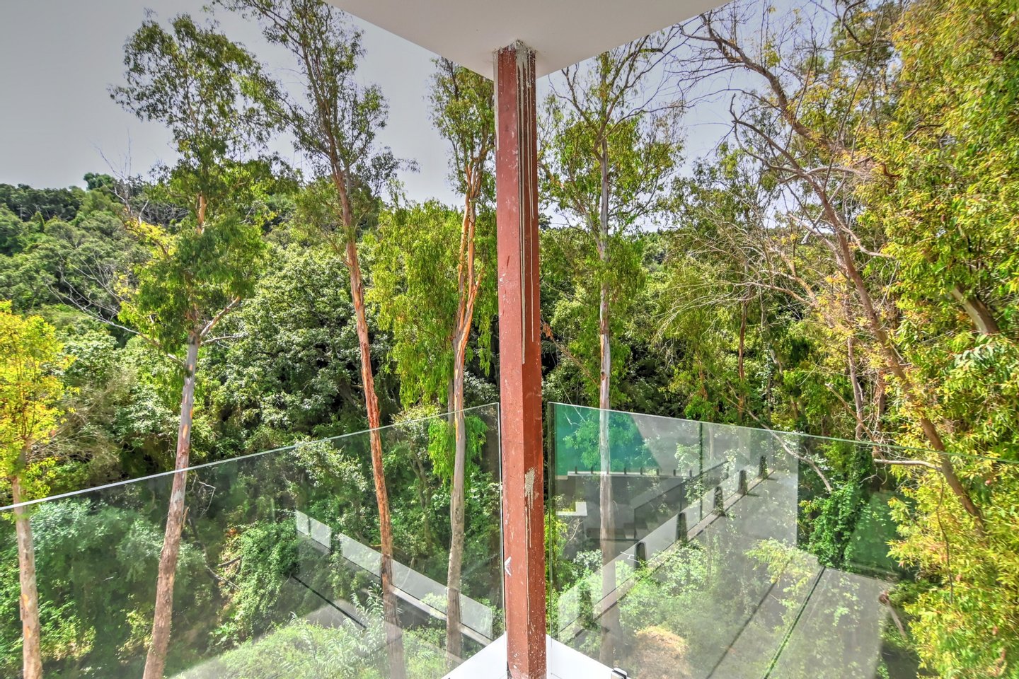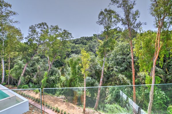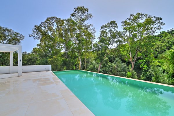 Die Gourmet‑Küche ist ausgestattet mit hochwertigen Miele‑Geräten, Weinkühlschrank, Down‑Draft‑Abzug und einer verborgenen Speisekammer mit pneumatischer Beleuchtung – ideal für stilvolles Empfangen. Die untere Ebene beherbergt die Master‑Suite mit begehbarem Kleiderschrank, Spa‑Bad mit freistehender Badewanne und Dusche sowie bodentiefem Fenster zum Schluchtblick. Ein weiteres Schlafzimmer en suite öffnet sich direkt zum Pool. Ergänzt wird das Niveau durch ein Gästebad, einen großzügigen Hauswirtschaftsraum und intelligente Stauraumlösungen mit Bewegungsmelderbeleuchtung.