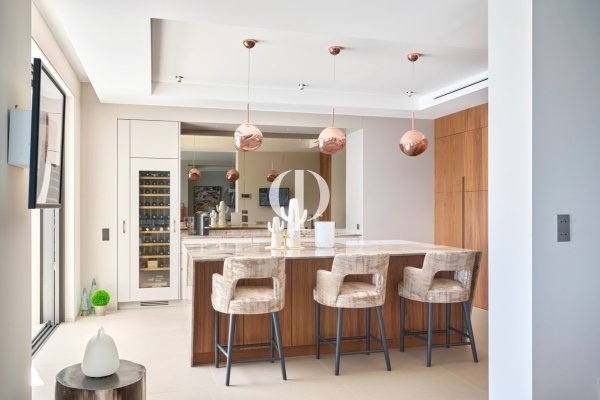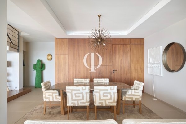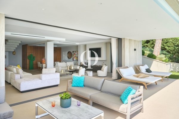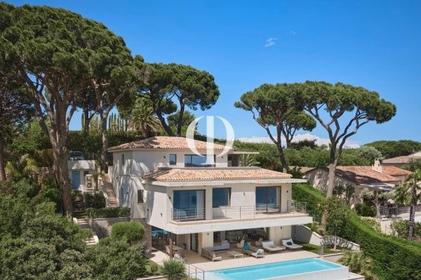 Im Herzen des begehrtesten Viertels von Sainte-Maxime bietet diese luxuriöse, moderne Villa von ca. 300 m² einen atemberaubenden Meerblick, der sich bis zum Horizont erstreckt. Das kürzlich erbaute Anwesen besticht durch eine entschieden