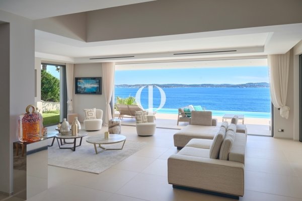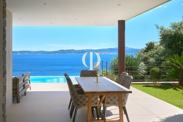Im Herzen des begehrtesten Viertels von Sainte-Maxime bietet diese luxuriöse, moderne Villa von ca. 300 m² einen atemberaubenden Meerblick, der sich bis zum Horizont erstreckt. Das kürzlich erbaute Anwesen besticht durch eine entschieden zeitgenössische Architektur und außergewöhnliche Volumen. Das lichtdurchflutete Wohnzimmer verfügt über spektakulär hohe Decken und fließt natürlich nach draußen. Eine große Terrasse grenzt an das Haus und öffnet sich zu einem beheizten Infinity-Pool, mit dem Mittelmeer als einzige Perspektive. Die Villa verfügt über vier Schlafzimmer mit Bad, die jeweils Komfort und Privatsphäre bieten, sowie ein separates Apartment, das sich ideal für die Unterhaltung von Familien oder Gästen eignet. Innen und außen gehen die Wohnräume nahtlos ineinander über und sind als vollständiges Eintauchen in die Landschaft und den Horizont konzipiert. Die Annehmlichkeiten sind des Standorts würdig: hochwertige Materialien, Fußbodenheizung, ein moderner Kamin, ein Hausautomationssystem, Überwachungskameras und ein beheizter Pool. Überdachter Parkplatz für zwei Fahrzeuge, ergänzt durch eine geschlossene Garage. Dieses seltene Anwesen verkörpert die Süße des Lebens an der Côte d'Azur, in einer ruhigen und vertraulichen Umgebung, nur wenige Minuten von den Stränden und dem Zentrum von Sainte-Maxime entfernt.