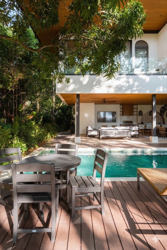 Die Natur war nicht freigegeben, dieses Zuhause zu bauen – sie war darin eingewoben. Ein majestätischer Baum ragt durch das Deck des Pooldecks, und die Architektur selbst wurde um die bestehenden Bäume herum geformt, wodurch das tropische Blätterdach erhalten bleibt, das diesem Anwesen seine Seele verleiht.