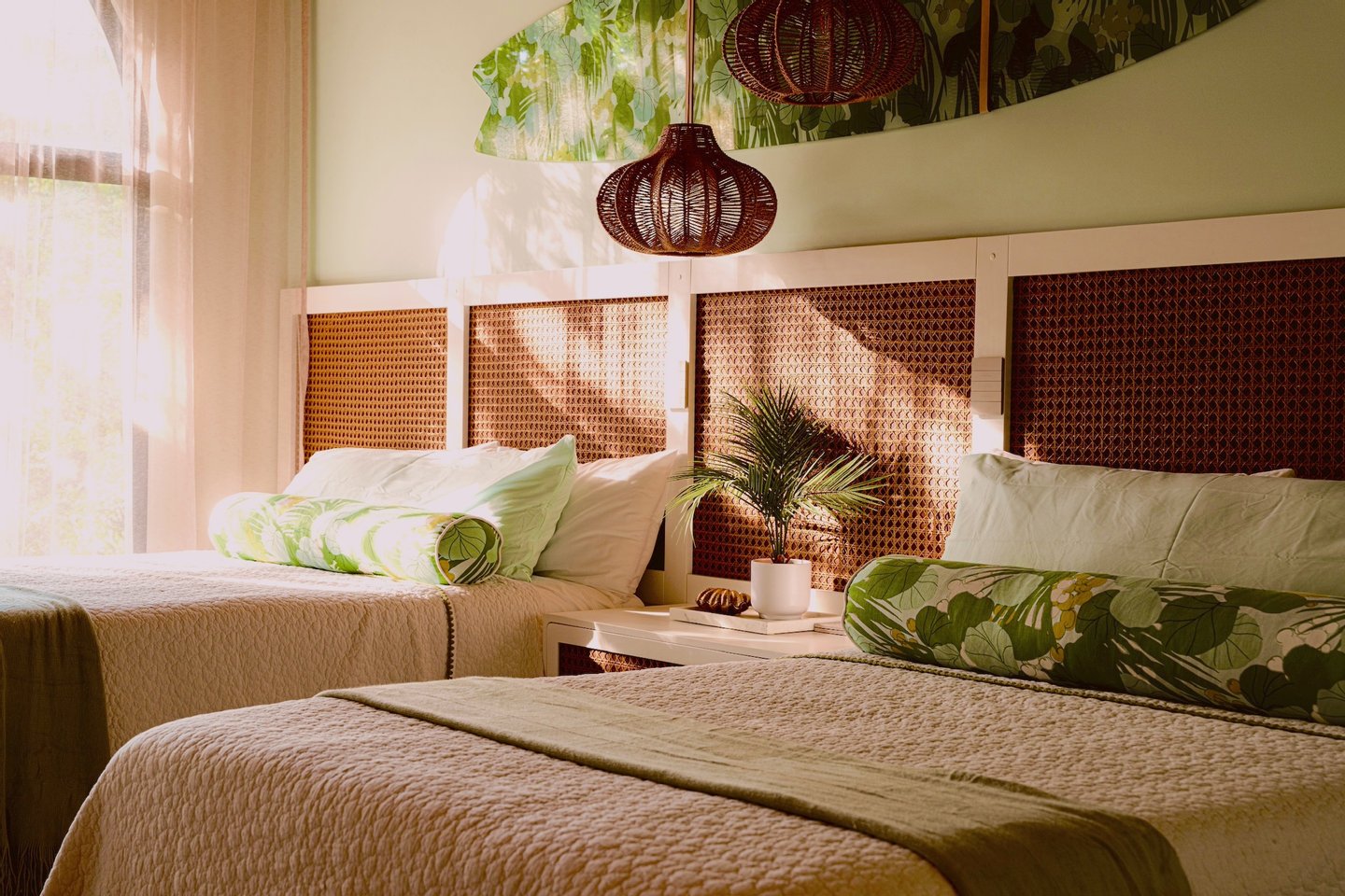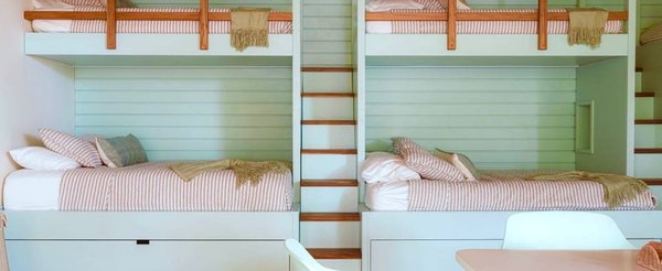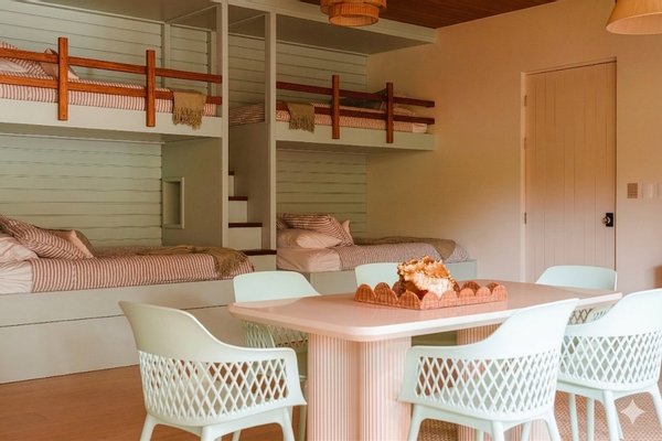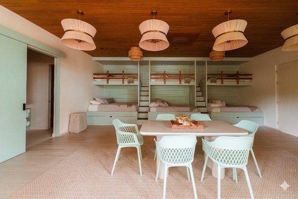Vier private Suiten bieten elegante Rückzugsorte für Familie und Gäste – drei mit King-Betten und eines mit zwei Queen-Size-Betten. Und dann gibt es noch das Schlafzimmer – eine eigene Welt. Sechs Etagenbetten, drei mit ausziehbaren Kindern, bis zu neun Personen. Es ist ein eigenes Bad mit zwei Waschbecken, zwei Duschen und zwei Toiletten. Und direkter Zugang zu einer riesigen privaten Terrasse mit Tischtennistisch, Grill und Essbereich. Ob Teenager übernehmen oder eine Mehrfamiliengruppe sich ausbreitet – jeder hat seinen Platz.
