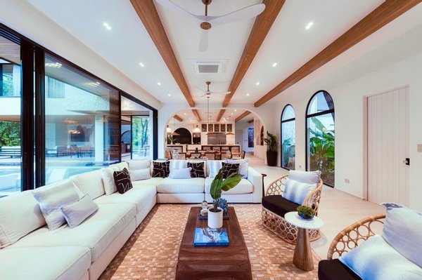 Von den oberen Schlafzimmern, dem Eingang und dem Poolbereich aus begrüßen Sie ein Blick auf den tropischen Ozeangipfel – eine Erinnerung daran, dass der Pazifik immer in der Nähe ist. Gehen Sie nach draußen und der Strand gehört Ihnen in wenigen Minuten.