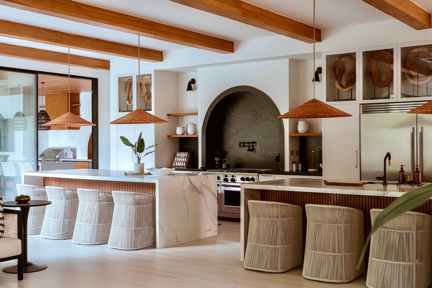 Für diejenigen, die gerne Gäste unterhalten, liefert dieses Zuhause auf jeder Ebene – buchstäblich. Die Kochküche mit zwei Inseln mündet hinter den Kulissen in eine versteckte Butlerküche – komplett mit Kaffeeecke, Eismaschine und allen nötigen Backups für das mühelose Gastgebern. Auf dem Pooldeck laden ein überdachter Grill und ein Speisesaal lange tropische Nachmittage ein, die in den Abend übergehen. Und oben auf der oberen Terrasse bietet ein weiterer Grillbereich weite Ausblicke, während die Sonne in den Pazifik schmilzt. Zwei Küchen. Zwei Grillabende. Keine Kompromisse.