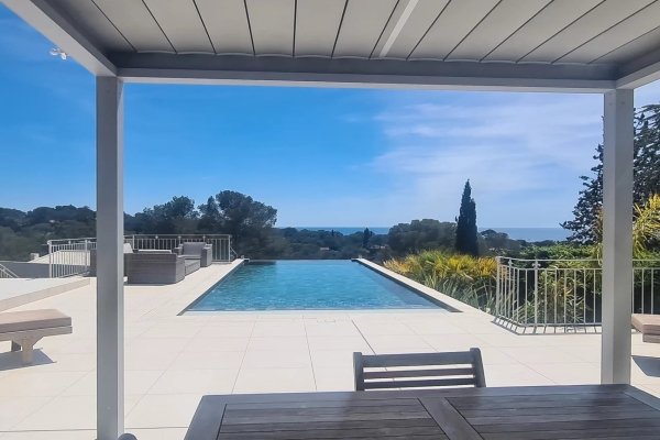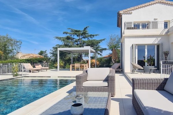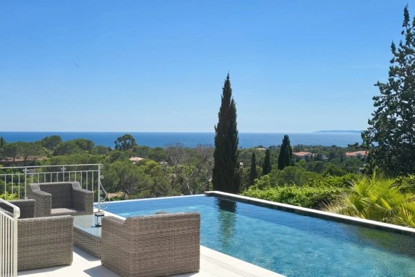 Ideal gelegen im begehrten Viertel Boulouris, nur 900 Meter vom Meer und den lokalen Geschäften entfernt, genießt diese elegante provenzalische Bastide eine dominante Position und einen atemberaubenden Panoramablick, der sich bis zum Golf von
