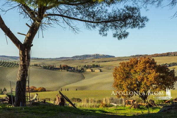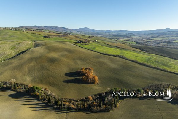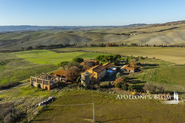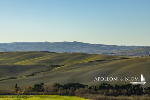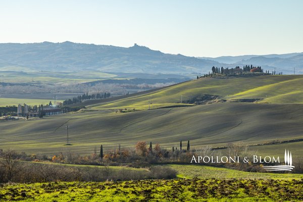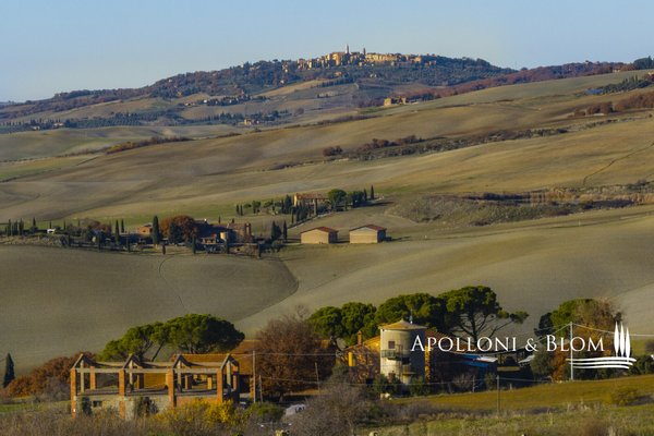 Bauernhaus mit Land und Blick auf das Val d'Orcia _ Pienza