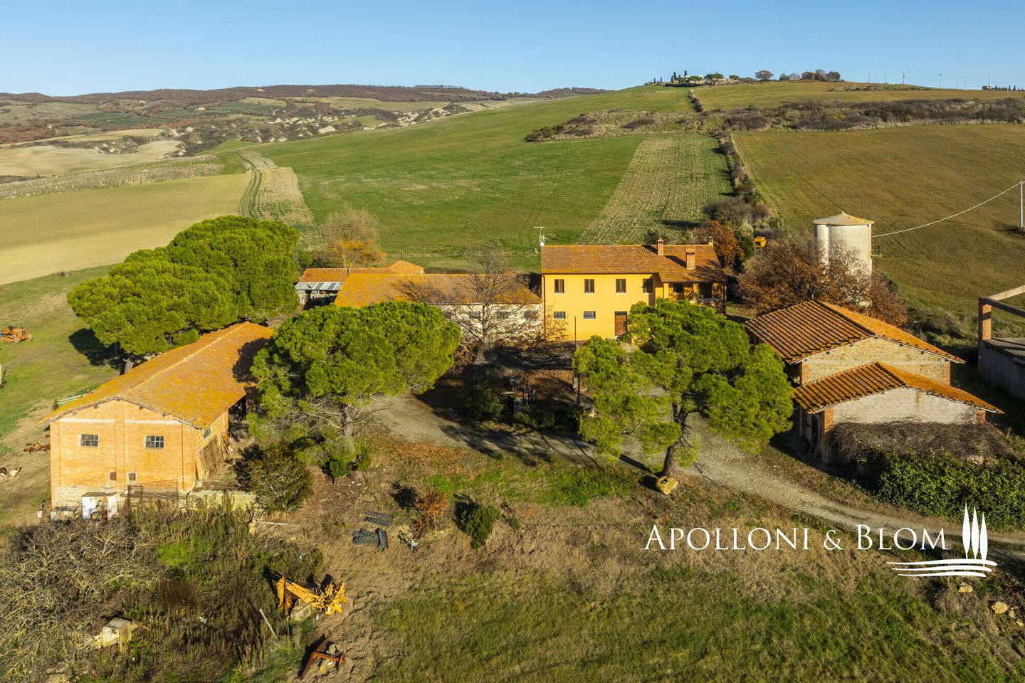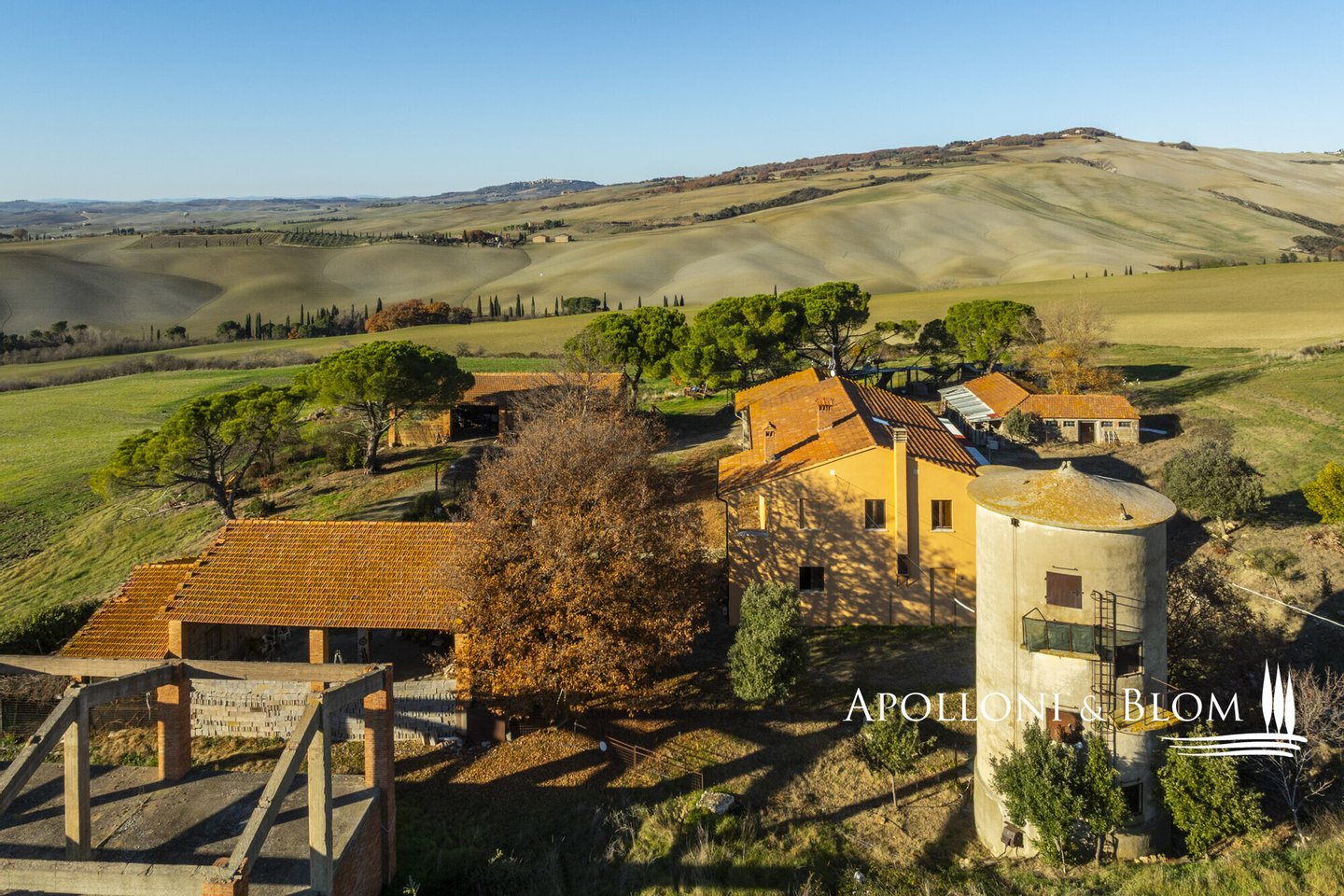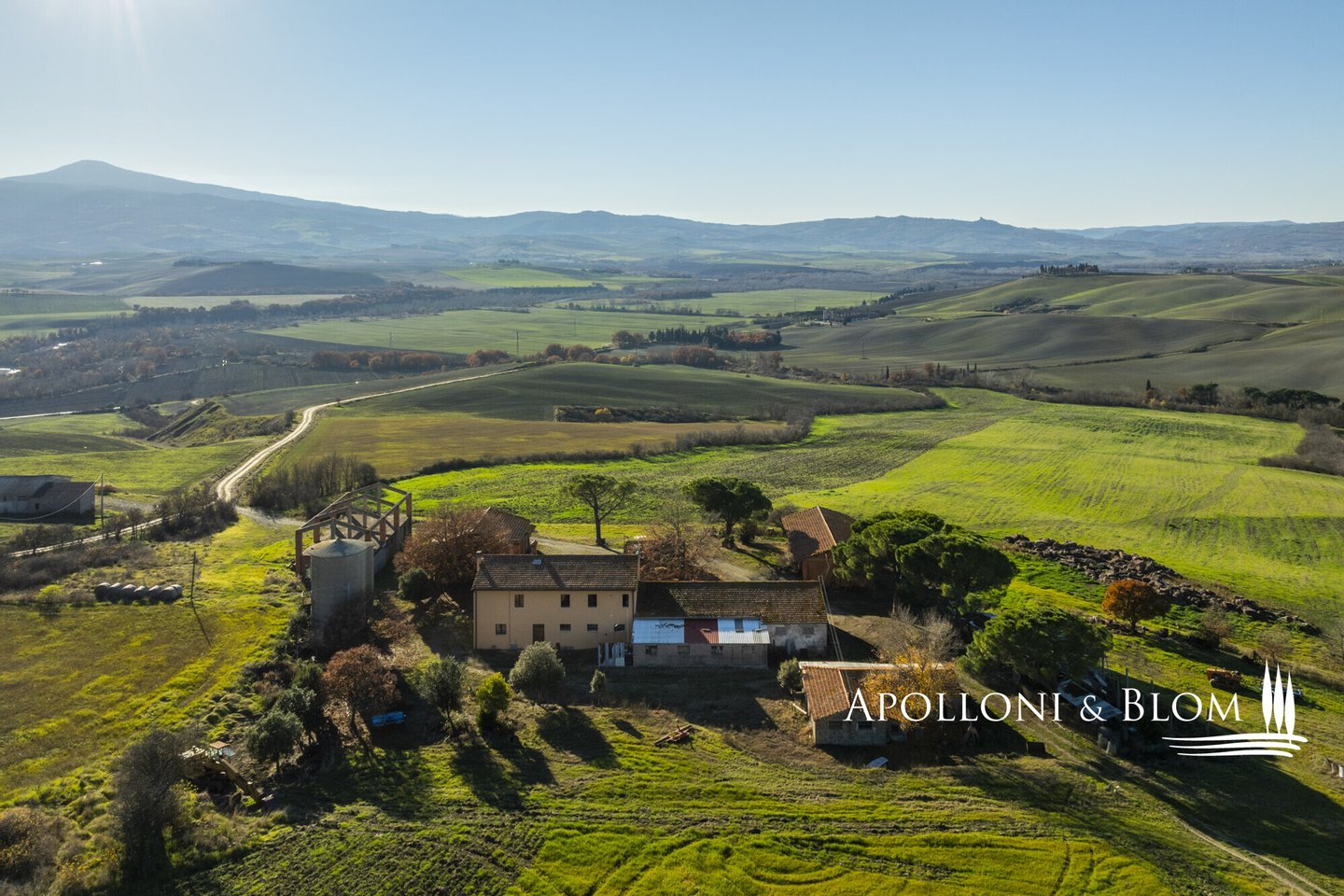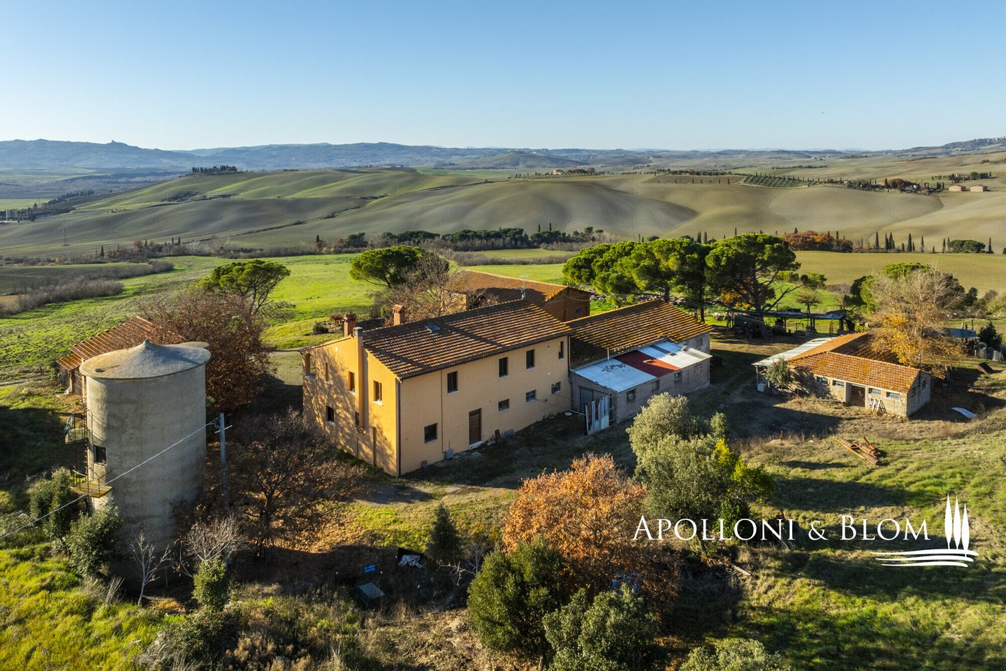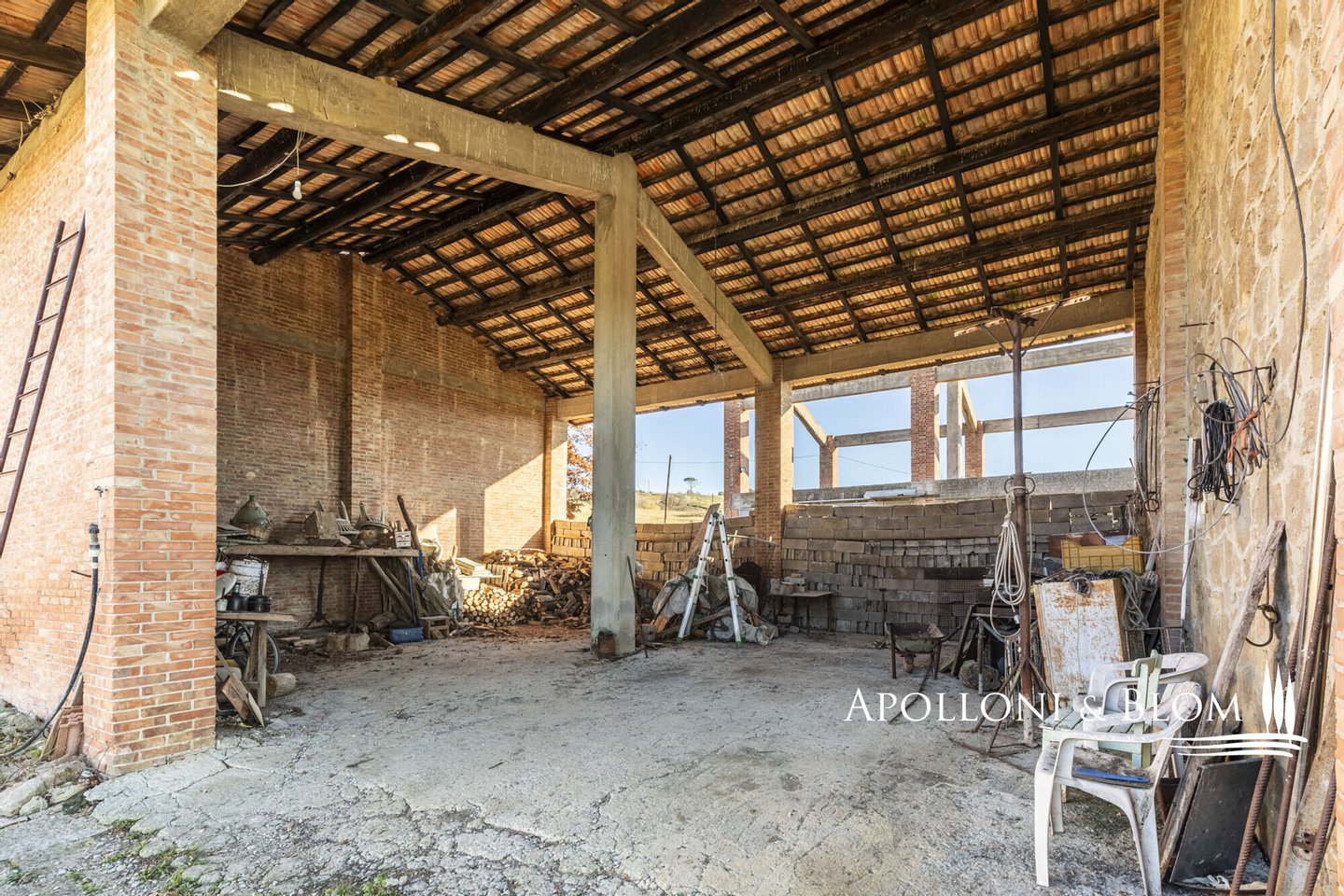 In bezaubernder Lage, umgeben von 104 Hektar Land, klassisches Bauernhaus mit zu restaurierenden Nebengebäuden, in der Nähe von Pienza zu verkaufen. Auf einem Hügel mit herrlichem Blick über das berühmte Val d'Orcia zum Monte Amiata gelegen, präsentieren wir ein landwirtschaftliches Anwesen von mehr als 104 Hektar Ackerland mit Bauernhaus und Nebengebäuden, die restauriert werden müssen. Das Hauptgebäude zeichnet sich durch eine regelmäßige rechteckige Struktur mit verputzten Fassaden, ein 2018 isoliertes Dach und eine Fläche von 700 Quadratmetern auf zwei Ebenen aus. Das Obergeschoss ist über eine klassische gemauerte Außentreppe mit einer beeindruckenden Loggia zugänglich. Obwohl einige Teile des Hauses renovierungsbedürftig sind, finden sich dort noch Elemente aus der Zeit, wie Terrakottaböden, hohe Decken mit freiliegenden Holzbalken und zwei Steinkamine. Der untere Teil des Bauernhauses umfasst eine Wohnküche mit Kamin, ein Schlafzimmer und ein Badezimmer und grenzt direkt an einen Schuppen, der ursprünglich als Traktorschuppen genutzt wurde und erhebliche Möglichkeiten für eine Umnutzung und Volumenrückgewinnung bietet. Um das Bauernhaus herum befinden sich weitere Nebengebäude mit einer Gesamtfläche von 461 Quadratmetern: drei vom Hauptgebäude getrennte gemauerte Nebengebäude/Dachhäuser, ein Silo und weitere Blechschuppen. Zu den Einrichtungen gehören eine Garage und Außenparkplätze. Ein ideales Objekt für landwirtschaftliche Unternehmer oder Investoren, die ein großes produktives Anwesen mit einem renovierungsbedürftigen Bauernhaus und Nebengebäuden, einem unvergleichlichen Panoramablick über das Val d'Orcia und Entwicklungsmöglichkeiten ohne strenge Baubeschränkungen suchen.