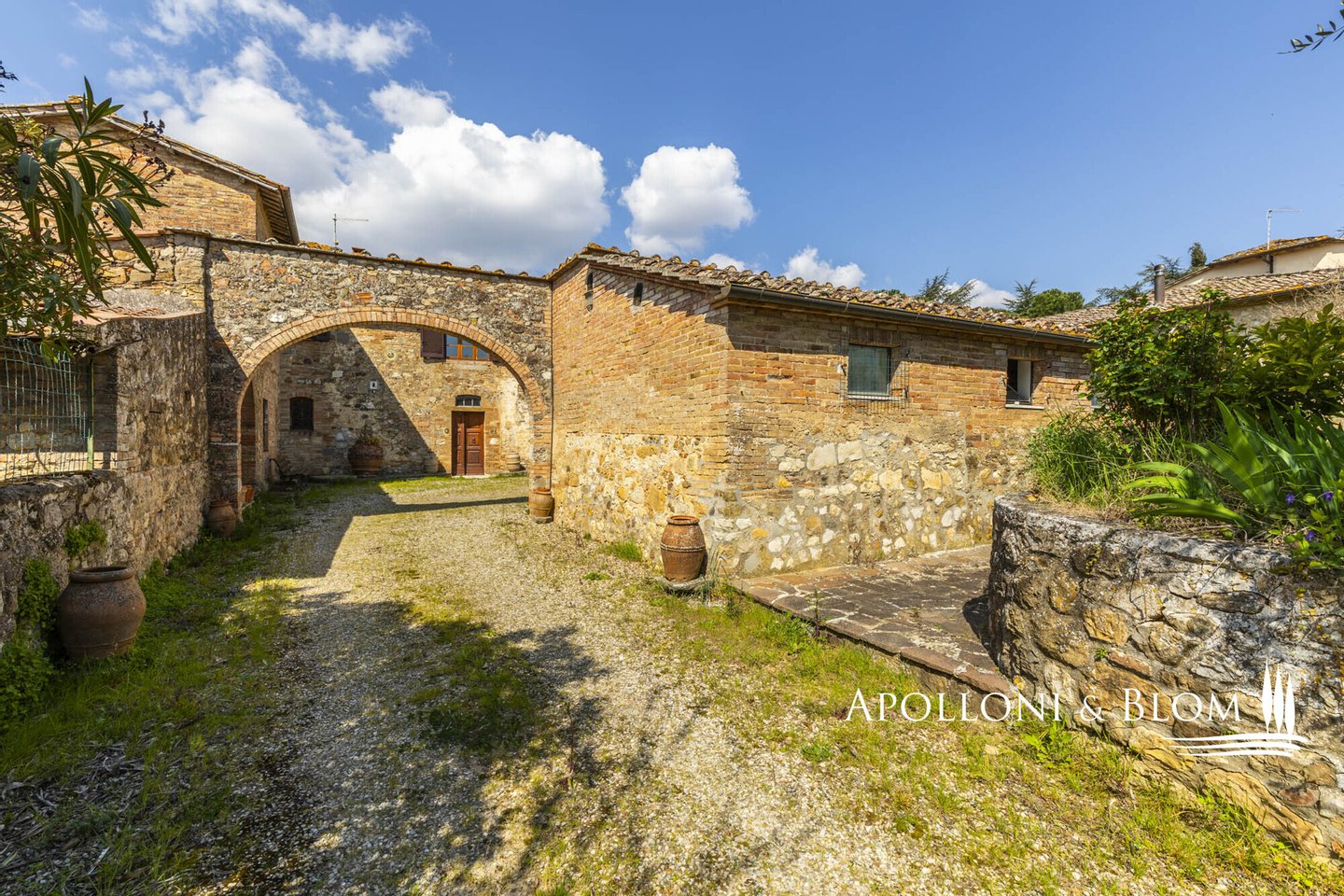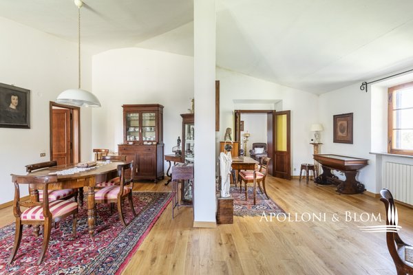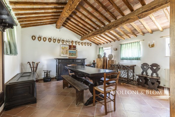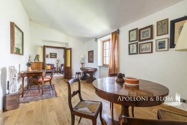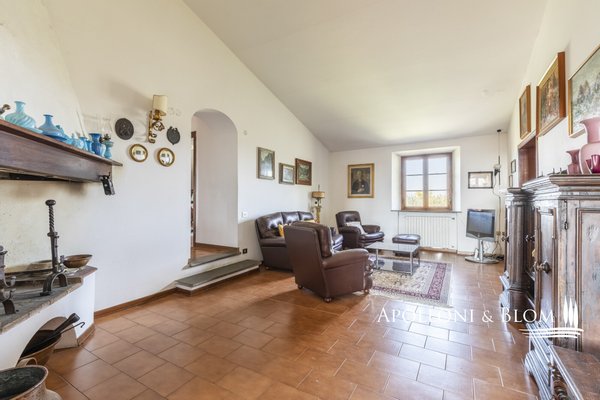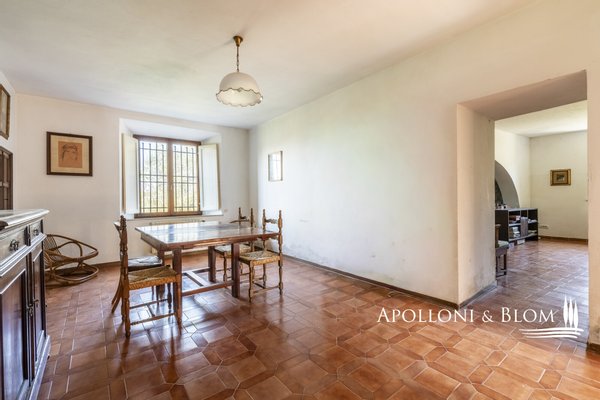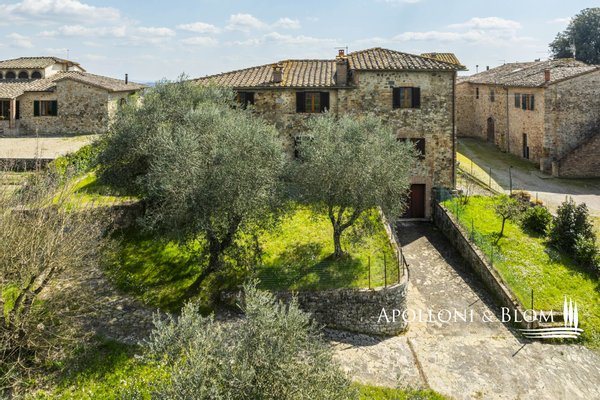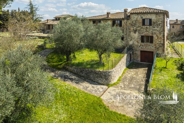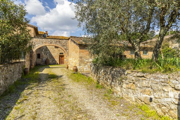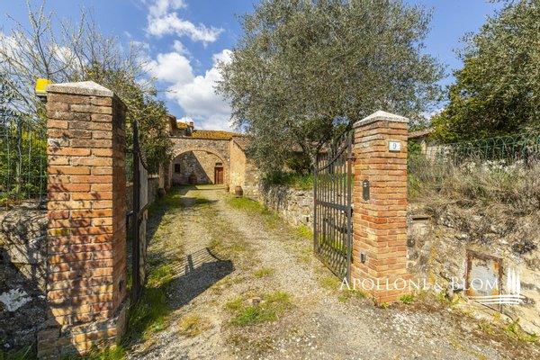 Unvergessliche Sonnenuntergänge auf den Chianti-Hügeln, Steinvilla auf drei Ebenen mit Innenhof und Garten zu verkaufen in der Nähe von Siena. Norden. In einem charmanten Komplex aus dem 14. Jahrhundert im Herzen des Chianti Classico, nur 6 km von Siena (Porta Camollia) entfernt, befindet sich ein Bauernhaus aus Stein mit ungehindertem Blick auf die Weinberge und Olivenhaine. Der Garten ist 4.490 qm groß, komplett eingezäunt und durch einen herrlichen Torbogen zugänglich, der in einen intimen Innenhof führt. Das Bauernhaus hat eine Fläche von 495 m² auf drei Ebenen und bewahrt seinen authentischen architektonischen Charakter mit Steinfassaden, Terrakotta-Dächern und Backsteinbögen. Das Erdgeschoss ist in großzügige Räume unterteilt, die sich um eine einladende Eingangshalle gruppieren, die die verschiedenen Wohnbereiche harmonisch miteinander verbindet. Ein Doppelwohnzimmer mit zentralem Bogen und Kamin wird von einer kürzlich renovierten Wohnküche flankiert. Drei Schlafzimmer, zwei Bäder mit Fenstern und ein Hauswirtschaftsraum vervollständigen die Etage. Vom Haupteingang führt eine Steintreppe in das Obergeschoss, wo ein Panoramafenster den Flur erhellt, der zu einem Wohnzimmer mit Kamin, einem doppelten Esszimmer mit Parkettboden, einer zweiten Küche, drei Schlafzimmern, zwei Bädern und einem Zwischengeschoss führt, das als Waschküche genutzt wird. Das Untergeschoss beherbergt eine Garage, einen Keller und zusätzliche Wirtschaftsräume, die sowohl von innen als auch über eine zweite Zufahrt zugänglich sind. Im Hof wurde eine Hütte geschickt in ein Nebengebäude mit Essbereich und Bad umgebaut, das sich auch als Hobbyraum, Arbeitszimmer oder Gästezimmer eignet. Zum Grundstück gehören ein Obstgarten mit Olivenbäumen und eine natürliche Ader zur Bewässerung. Das Haupthaus ist derzeit in zwei Wohnungen unterteilt, kann aber leicht in eine elegante Villa umgestaltet werden oder es können zusätzliche Einheiten oder Ferienhäuser geschaffen werden, was eine große Flexibilität sowohl für die private Nutzung als auch für die Unterbringung bietet.