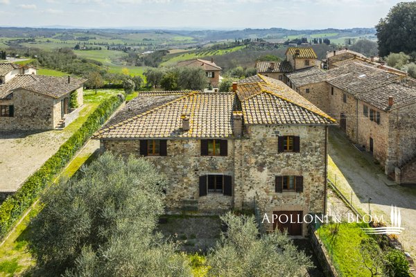 Unvergessliche Sonnenuntergänge auf den Chianti-Hügeln, Steinvilla auf drei Ebenen mit Innenhof und Garten zu verkaufen in der Nähe von Siena. Norden. In einem charmanten Komplex aus dem 14. Jahrhundert im Herzen des Chianti Classico, nur 6 km von