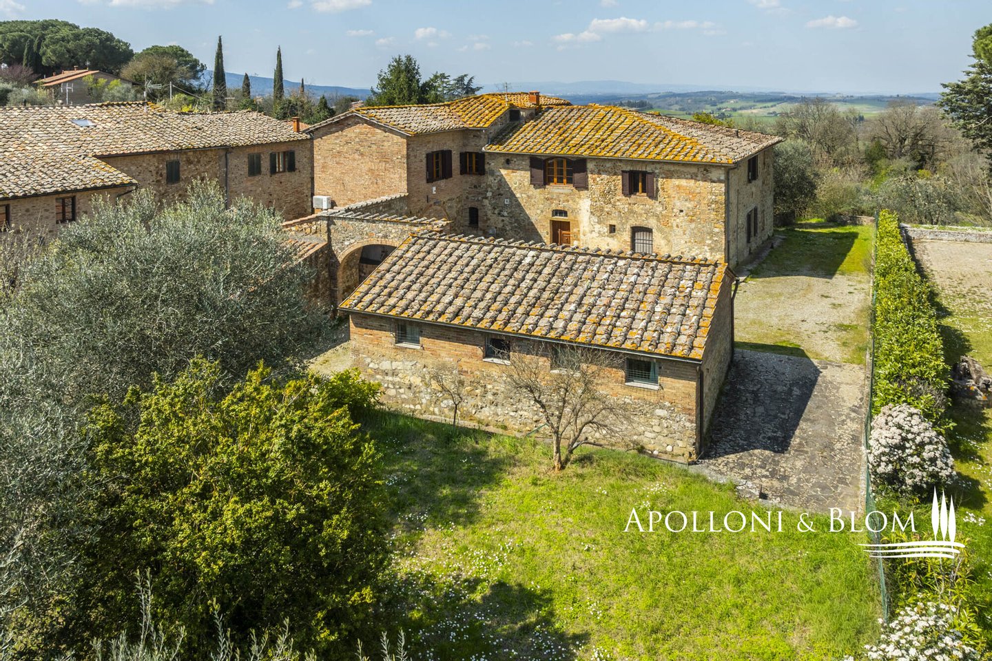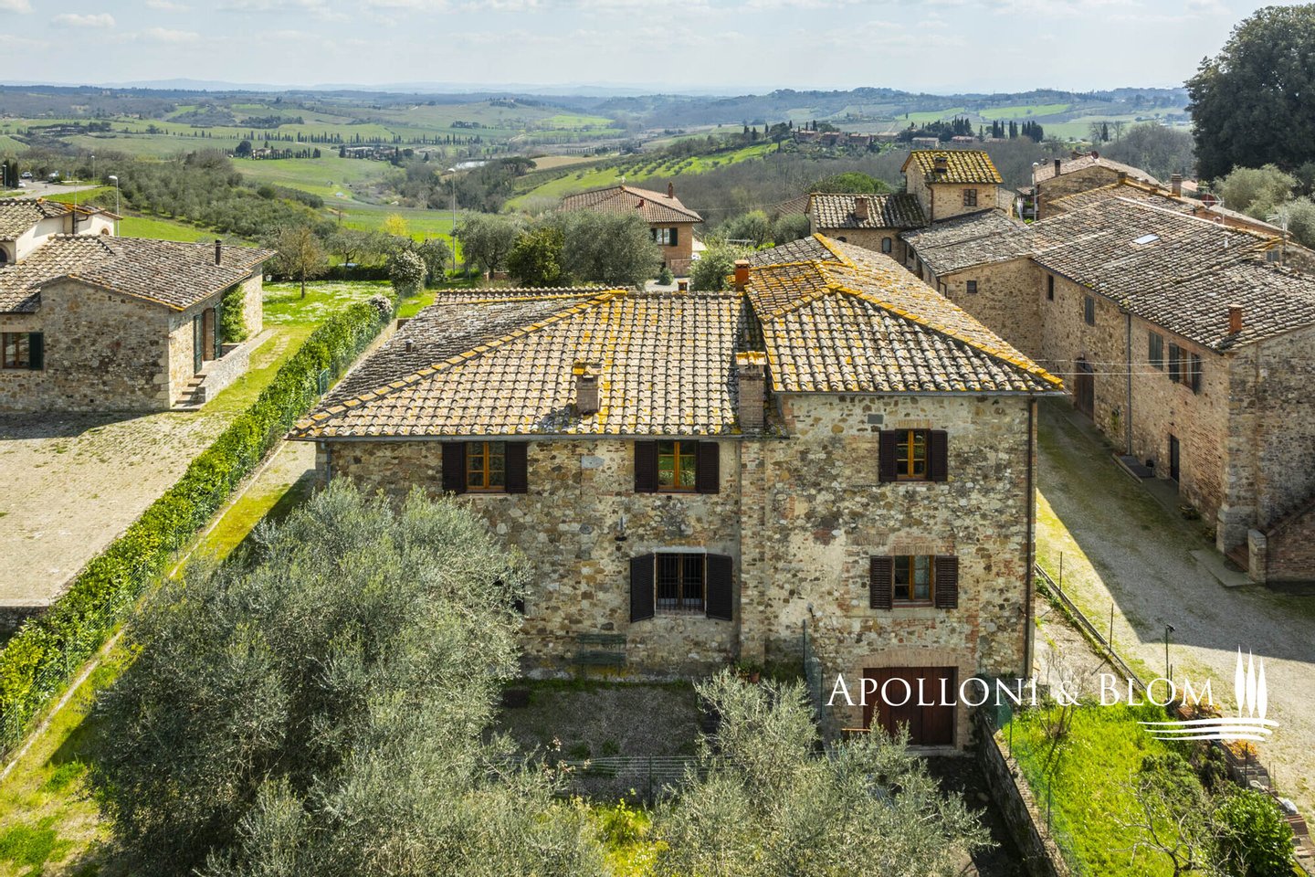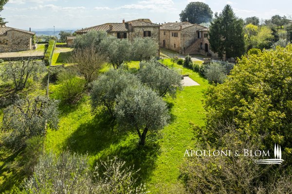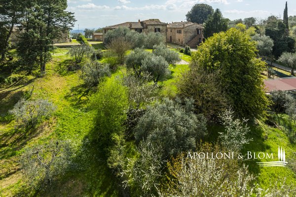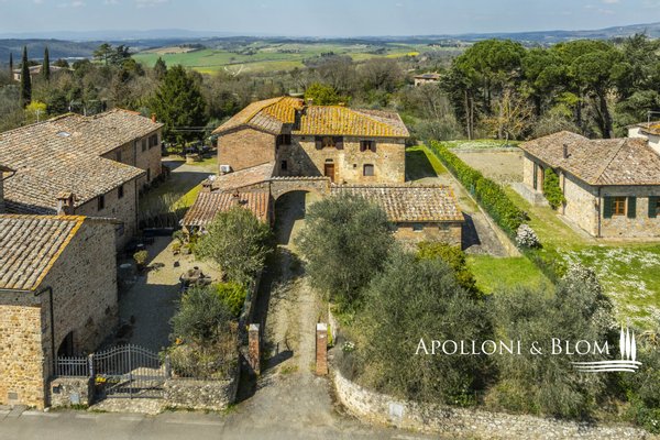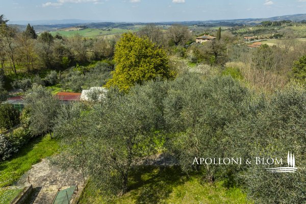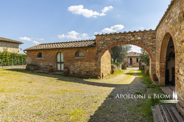 Unvergessliche Sonnenuntergänge auf den Chianti-Hügeln, Steinvilla auf drei Ebenen mit Innenhof und Garten zu verkaufen in der Nähe von Siena. Norden. In einem charmanten Komplex aus dem 14. Jahrhundert im Herzen des Chianti Classico, nur 6 km von Siena (Porta Camollia) entfernt, befindet sich ein Bauernhaus aus Stein mit ungehindertem Blick auf die Weinberge und Olivenhaine. Der Garten ist 4.490 qm groß, komplett eingezäunt und durch einen herrlichen Torbogen zugänglich, der in einen intimen Innenhof führt. Das Bauernhaus hat eine Fläche von 495 m² auf drei Ebenen und bewahrt seinen authentischen architektonischen Charakter mit Steinfassaden, Terrakotta-Dächern und Backsteinbögen. Das Erdgeschoss ist in großzügige Räume unterteilt, die sich um eine einladende Eingangshalle gruppieren, die die verschiedenen Wohnbereiche harmonisch miteinander verbindet. Ein Doppelwohnzimmer mit zentralem Bogen und Kamin wird von einer kürzlich renovierten Wohnküche flankiert. Drei Schlafzimmer, zwei Bäder mit Fenstern und ein Hauswirtschaftsraum vervollständigen die Etage. Vom Haupteingang führt eine Steintreppe in das Obergeschoss, wo ein Panoramafenster den Flur erhellt, der zu einem Wohnzimmer mit Kamin, einem doppelten Esszimmer mit Parkettboden, einer zweiten Küche, drei Schlafzimmern, zwei Bädern und einem Zwischengeschoss führt, das als Waschküche genutzt wird. Das Untergeschoss beherbergt eine Garage, einen Keller und zusätzliche Wirtschaftsräume, die sowohl von innen als auch über eine zweite Zufahrt zugänglich sind. Im Hof wurde eine Hütte geschickt in ein Nebengebäude mit Essbereich und Bad umgebaut, das sich auch als Hobbyraum, Arbeitszimmer oder Gästezimmer eignet. Zum Grundstück gehören ein Obstgarten mit Olivenbäumen und eine natürliche Ader zur Bewässerung. Das Haupthaus ist derzeit in zwei Wohnungen unterteilt, kann aber leicht in eine elegante Villa umgestaltet werden oder es können zusätzliche Einheiten oder Ferienhäuser geschaffen werden, was eine große Flexibilität sowohl für die private Nutzung als auch für die Unterbringung bietet.