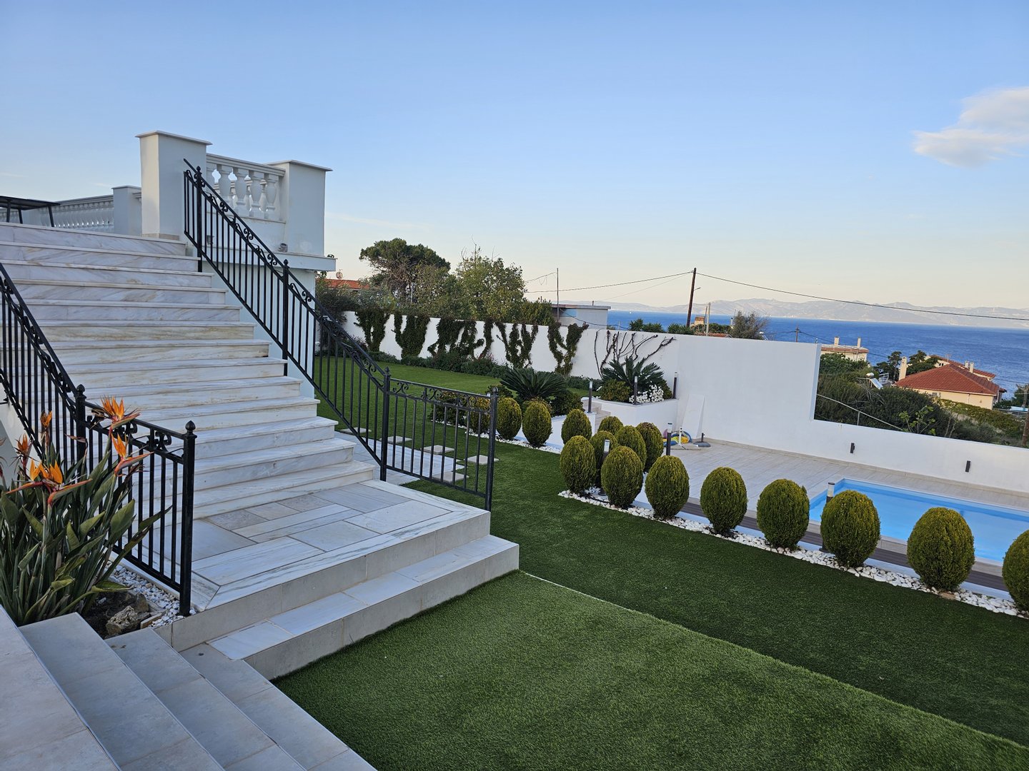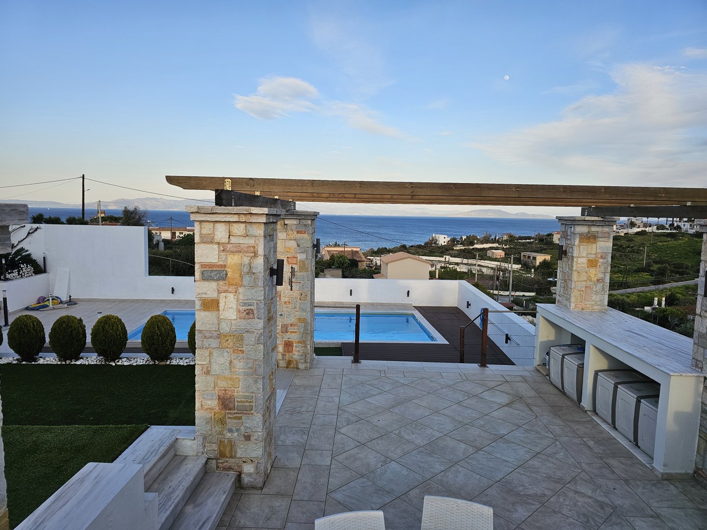 Das Anwesen bietet ununterbrochene, ostwärts ausgerichtete Ausblicke über die Ägäis in Richtung Evia, mit voller Sonnenaufgang und einem seltenen Gefühl von Offenheit und Privatsphäre.