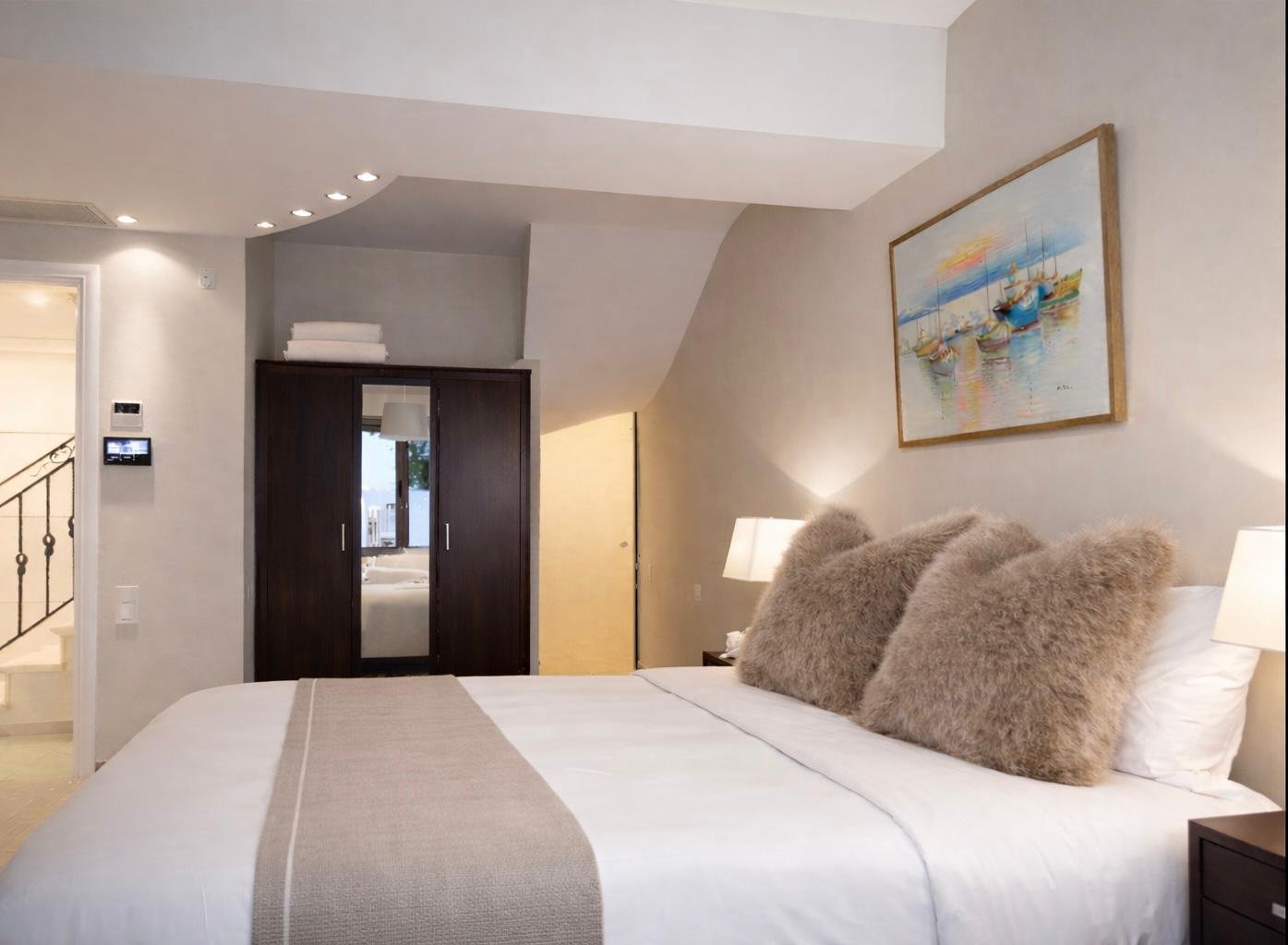 Die Schlafzimmer befinden sich im unteren Stockwerk, was Privatsphäre und Komfort erhöht und gleichzeitig die Verbindung zur Außenumgebung aufrechterhält.