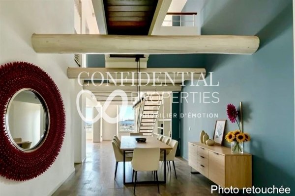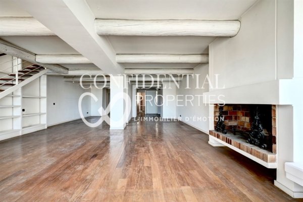 Accessible via a separate entrance, this dual-aspect triplex apartment boasts remarkable spaciousness and a fluid flow between the rooms. The ground floor features a superb 78 m² living area bathed in light and enhanced by exposed beams, a fireplace and tall windows opening onto the harbour. A separate kitchen and a bedroom with an en-suite shower room complete this level.