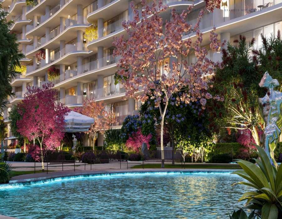 Darüber hinaus verfügt die Wohnung über einen großen Swimmingpool auf der Podiumsebene, der an heißen Tagen zum Abkühlen einlädt oder auf der Sonnenterrasse zum Faulenzen einlädt. Die Sozial- und Loungebereiche bieten eine elegante Lobby mit Designer-Sitzmöbeln, eine Boutique-Barista-Station und eine Bibliothek, in der Sie mit einem guten Buch entspannen können.