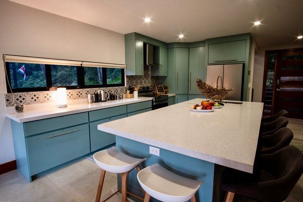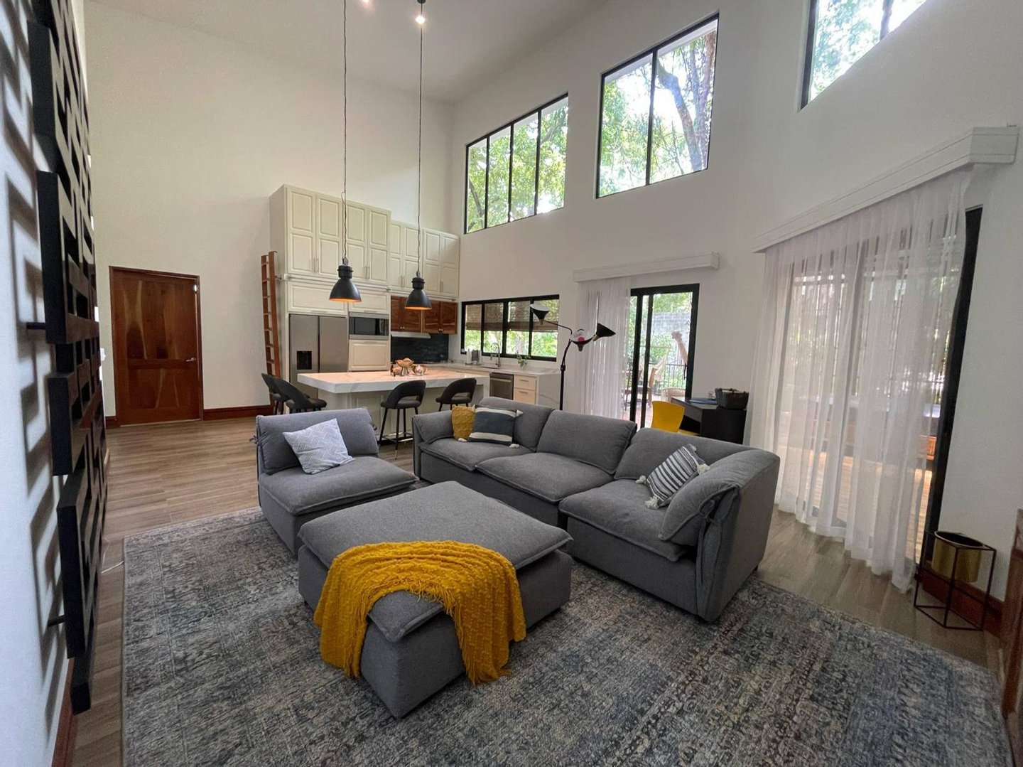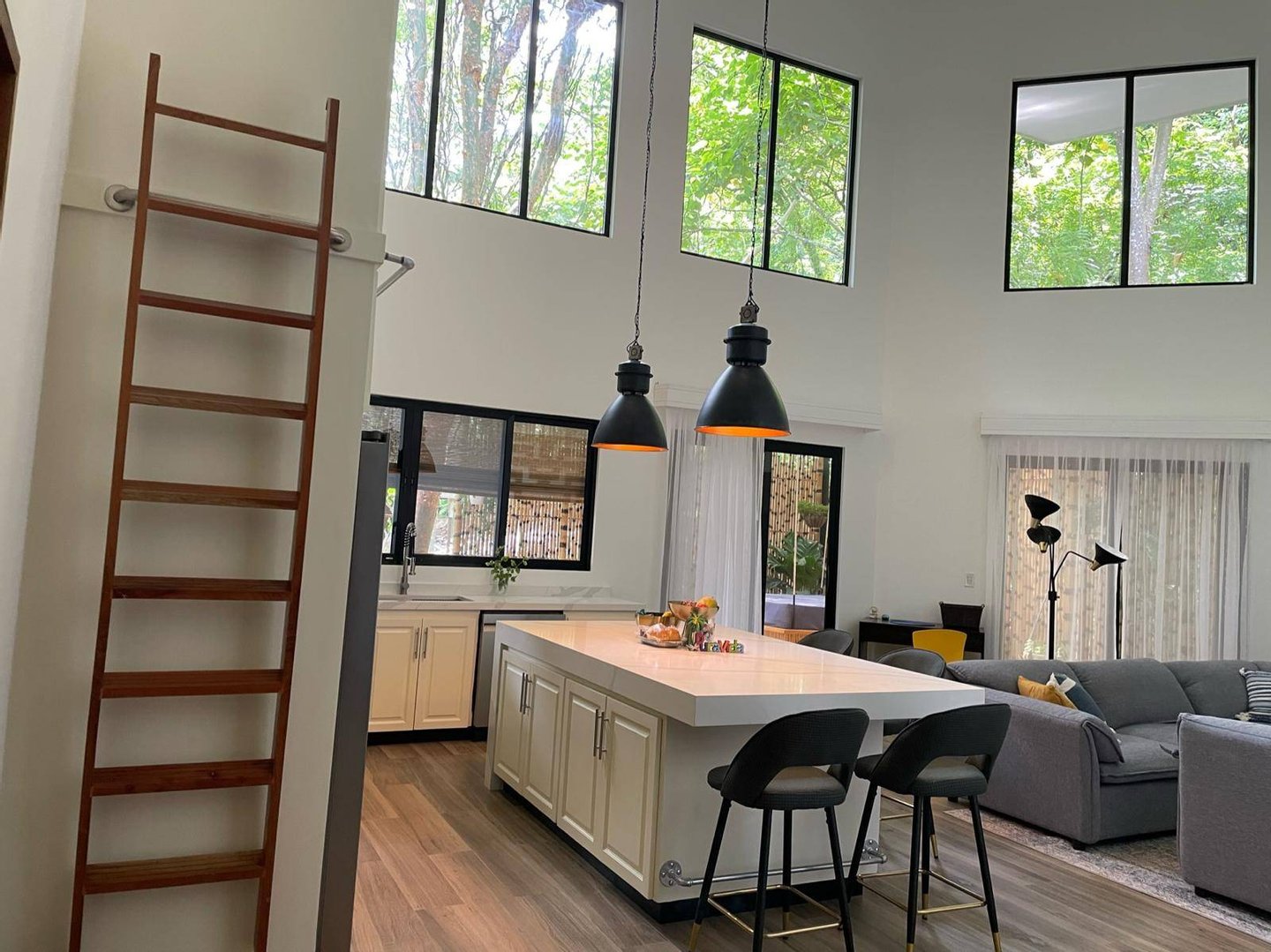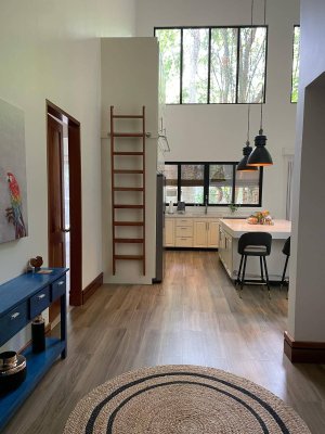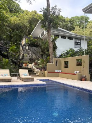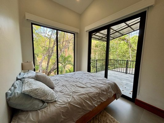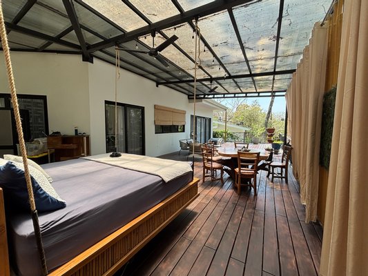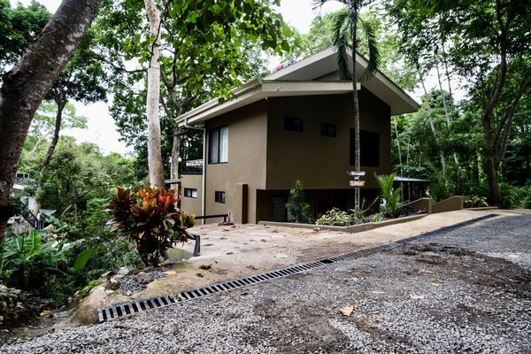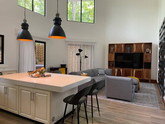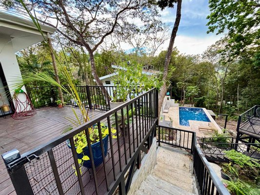Casa Colina is a modern two story, three bedroom, three bathroom home featuring floor to ceiling glass that provides a treehouse experience set within the surrounding jungle canopy.
