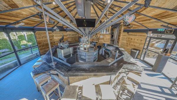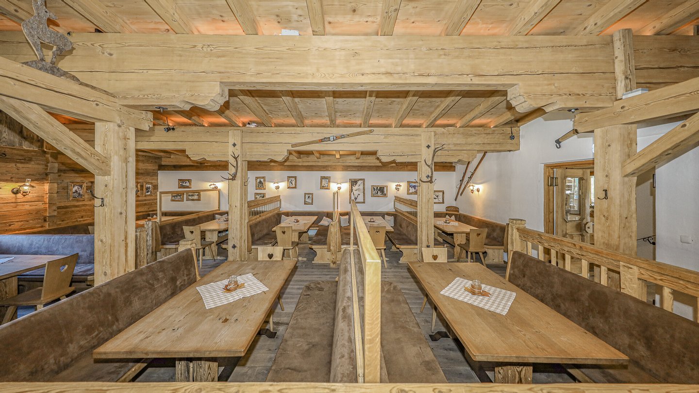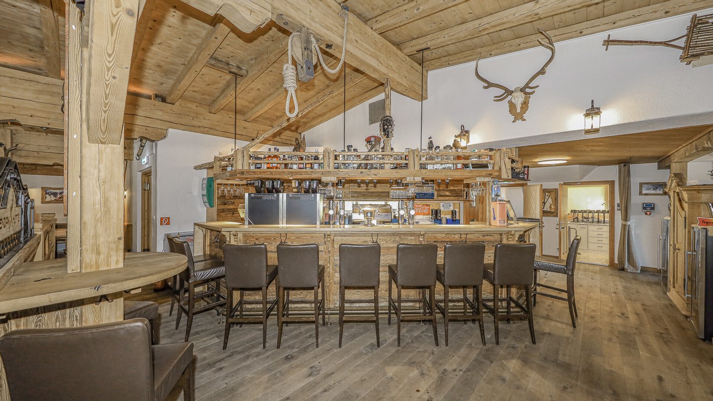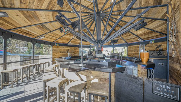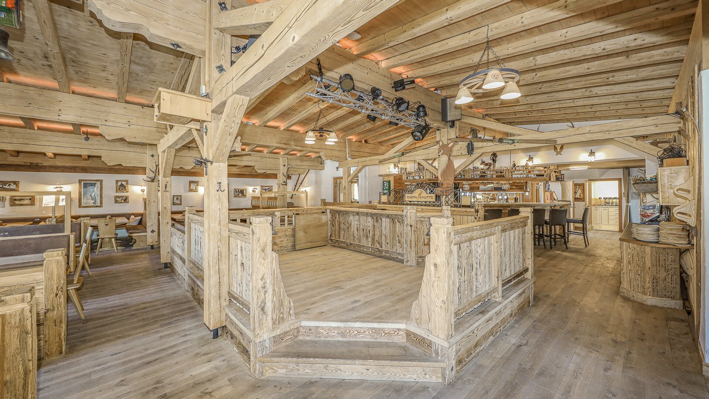 Im Erdgeschoss sind der 185 m² große rustikale Restaurant im Almüttencharakter mit Bar für 220 Personen, eine exklusive Abend-Lounge mit Kamin für 70 Personen, die große überdachte Schirmbar für bis zu 130 Personen, der Wintergarten für 200 Personen mit einer Innenterasse sowie eine Außenterrasse, die komplett ausgestattete Küche und ein kleines Büro vorhanden.