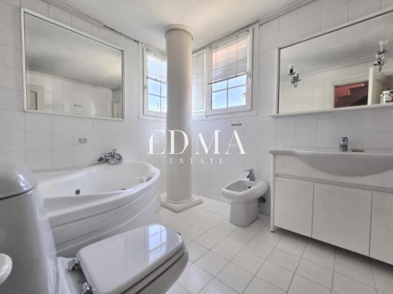 Mit großzügigen Innenräumen von 310 m² bietet die Residenz vier geräumige Schlafzimmer, zwei Wohnzimmer und zwei komplett ausgestattete Küchen und bietet Flexibilität und Funktionalität für ein komfortables Familienleben. Das architektonische Design des Hauses integriert breite Balkontüren, die eine atemberaubende Aussicht auf das Meer und die umliegende grüne Natur einfangen und das natürliche Licht in die Innenräume strömen lassen.
