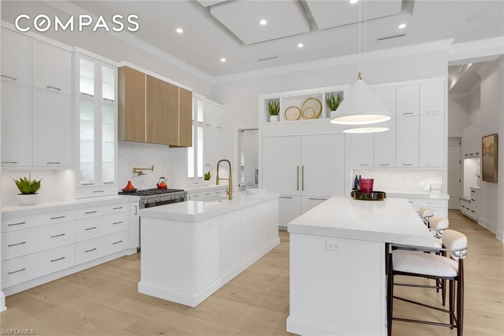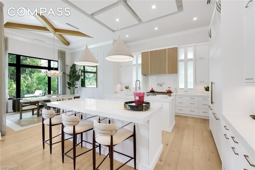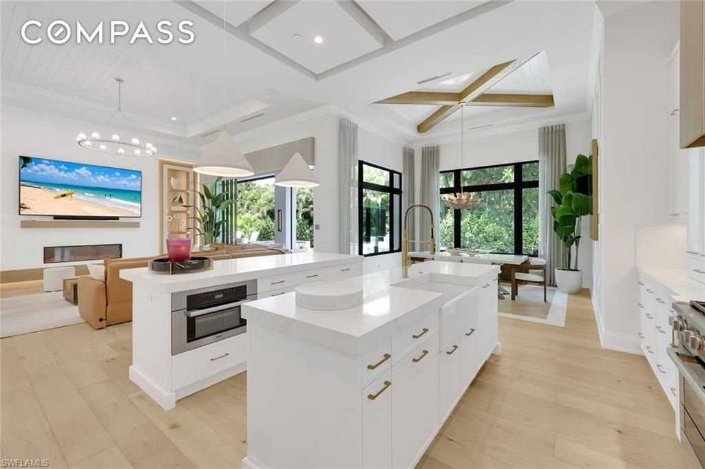 Ein modernes Küstenmeisterwerk im Herzen des prestigeträchtigen Park Shore – mit exklusivem Zugang zum privaten Strandpark und der Möglichkeit, einen Bootsplatz im Park Shore Yacht Club zu besitzen oder zu mieten. Die 767 Park Shore Dr ist ein neu errichtetes architektonisches Statement, nur wenige Augenblicke von den zuckerweißen Sandstränden des Golfs entfernt, wo raffiniertes Design, moderne Innovation und müheloses Küstenleben zusammenkommen. Mit fast 6.500 Quadratfuß verfügt diese außergewöhnliche Residenz über fünf Schlafzimmer mit eigenem Bad, ein privates Arbeitszimmer/Büro, eine Waschküche im ersten und zweiten Stock sowie ein Bonus-/Familienzimmer – alles verbunden durch einen privaten Aufzug oder eine große Treppe. Das Haus zeigt eine handwerkliche Meisterschaft, darunter ein klimatisiertes Weinzimmer, hoch aufwendige Decken, maßgeschneiderte Holzarbeiten, breite europäische Weißeichenböden und kuratierte Designerbeleuchtung. Der große Raum, getragen von markanten architektonischen Details, bodentiefen Schiebern und einem markanten Kamin, verbindet nahtlos Außenatmosphäre mit Resort-Stil. Draußen genießen Sie ein privates Resort mit Salzwasserpool, integriertem Spa, Swim-up-Bar-Sitzplätzen, großzügigen Unterhaltungsbereichen, üppiger Landschaftsgestaltung und einer voll ausgestatteten Außenküche. Motorisierte integrierte Gitter und Storm Smart-Hurrikanfenster ermöglichen ganzjährigen Vergnügen. Smart-Home-Technologie, integriertes AV und Beleuchtung, fortschrittliche Sicherheit, automatische Jalousien und ein Generator für das ganze Haus bieten modernen Komfort. Die Küche des Kochs verfügt über maßgefertigte Schränke, zwei Inseln, nebeneinander angeordnete Kühl- und Gefrierschränke, einen 8-Kocher-Miele-Herd und einen Meile-Dampfofen, ergänzt durch eine voll ausgestattete Butler-Vorratskammer mit integrierter Miele-Kaffee- und Cappuccinostation sowie zusätzlichen Fisher & Paykel Geschirrspülerschubladen. Die Hauptsuite ist ein privater Zufluchtsort mit einer Regenbar, hohen Balkendecken und zwei Spa-inspirierten Bädern mit separaten Wasserklosetten, einer großzügigen Multifunktionsdusche und maßgeschneiderten Schränken. Mit einer Höhe von 12 Fuß (laut Höhennachweis) in Zone X bietet die Immobilie Höhenlage, Privatsphäre und Platz, komplett mit einer runden Auffahrt und einer geteilten Garage für drei Autos. Mehr als ein Haus ist 767 Park Shore Dr ein Legacy-Grundstück, nur wenige Minuten von Waterside Shops, 5th Ave S, Third Street S und Mercato entfernt, sorgfältig gestaltet für diejenigen, die nichts weniger als außergewöhnliches erwarten.