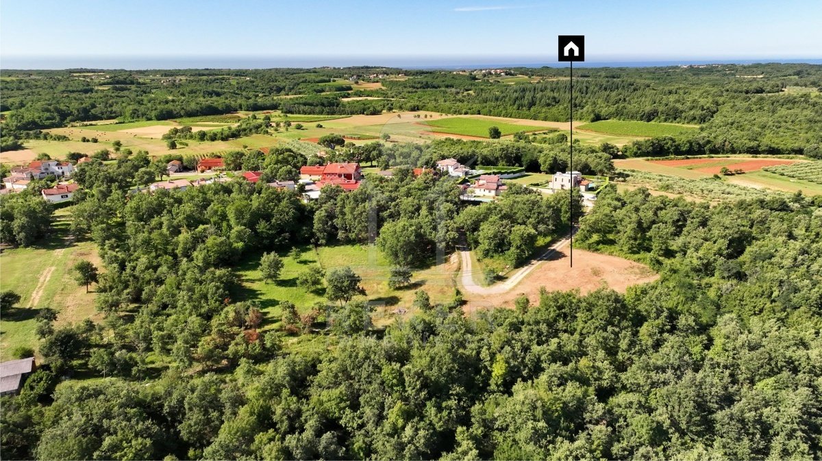 In einer der begehrtesten Lagen im westlichen Istrien, zwischen Vižinada und Poreč, erwartet Sie dieses außergewöhnliche Baugrundstück in ruhiger Hügellage am Rand eines kleinen Dorfes. Hier genießen Sie viel Privatsphäre. Dazu kommt ein freier,