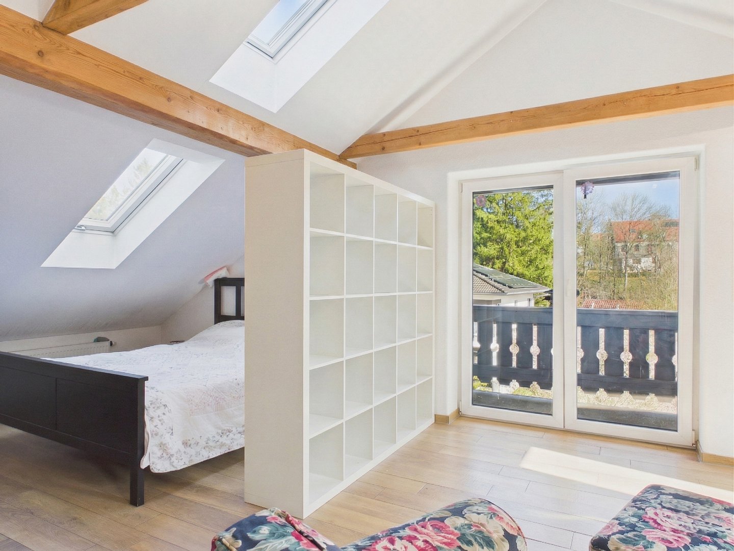 Dachgeschoss: Das 2013 ausgebaute Dachgeschoss bietet eine zusätzliche 2-Zimmer-Wohnung mit Studio, integrierter Küche und Kaminofen. Dank des offenen Treppenhauses lassen sich das Ober- und Dachgeschoss flexibel als eine sehr große, zusammenhängende Wohneinheit nutzen.