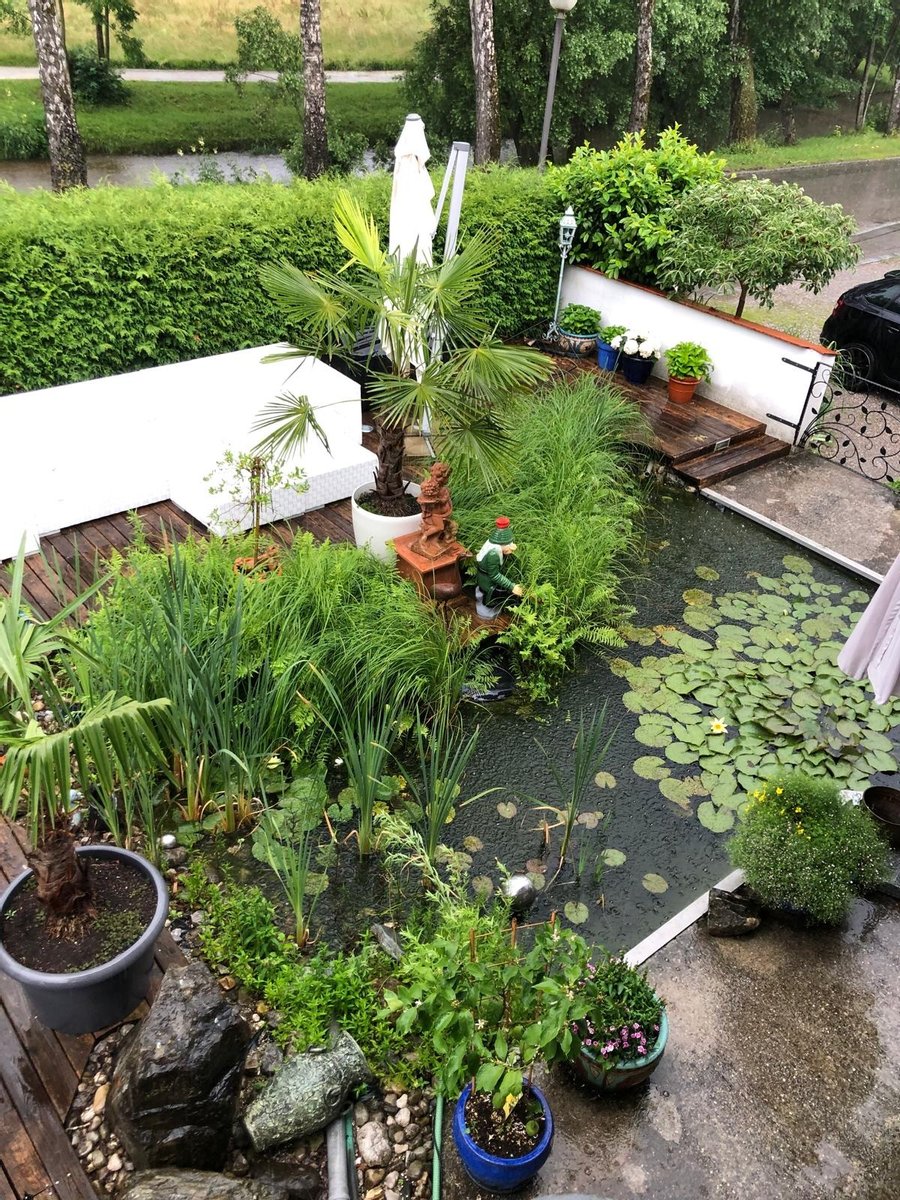 – Großzügige Holzterrasse mit idyllischem Koiteich