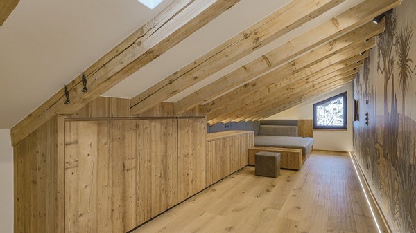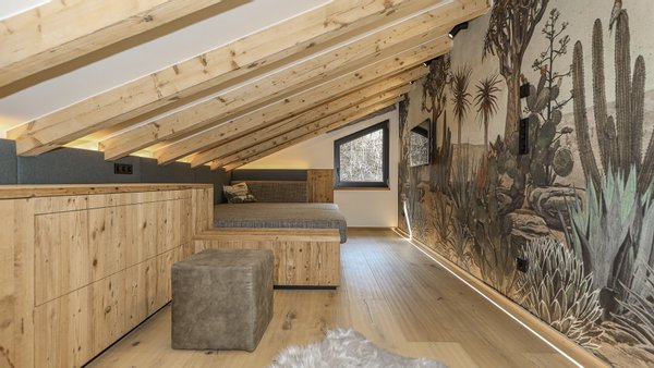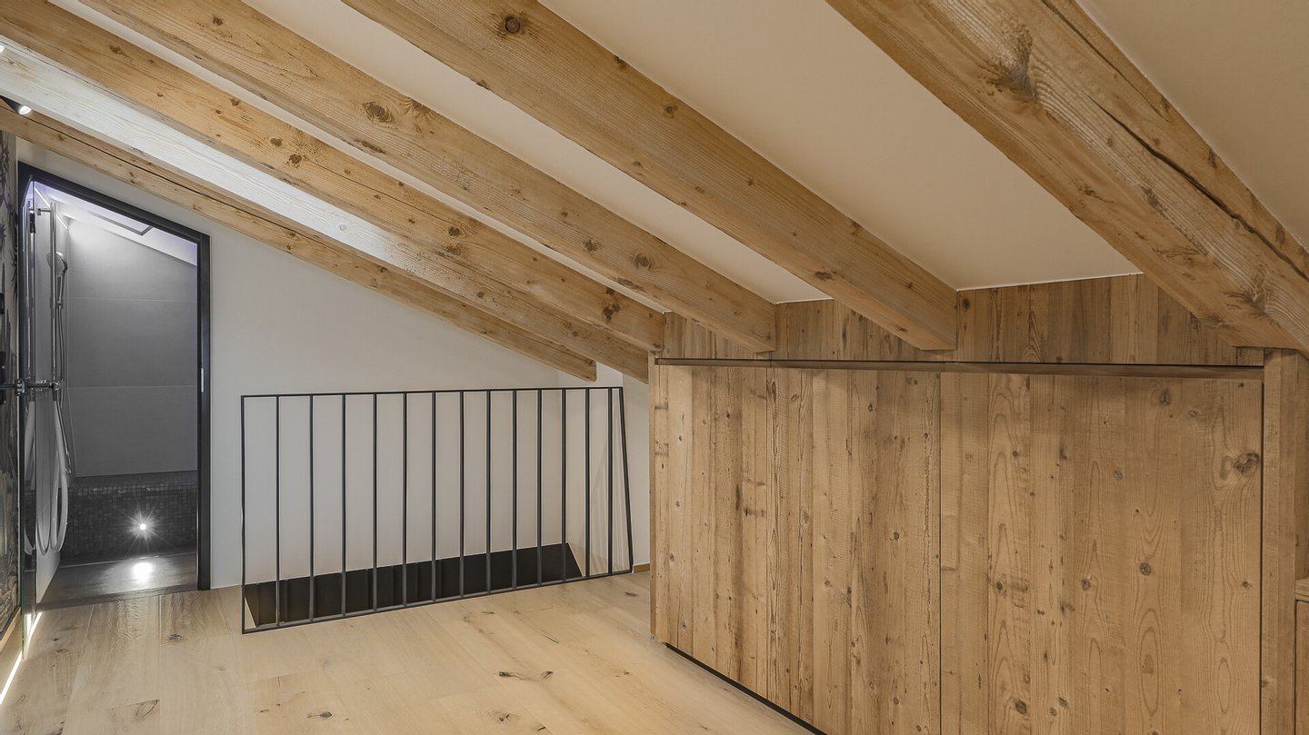 Von der Diele führt eine Treppe in das Obergeschoss der Wohnung, wo sich ein weiterer großer Schlafraum/Wellnessbereich sowie ein Dampfbad mit integrierter Dusche befindet.