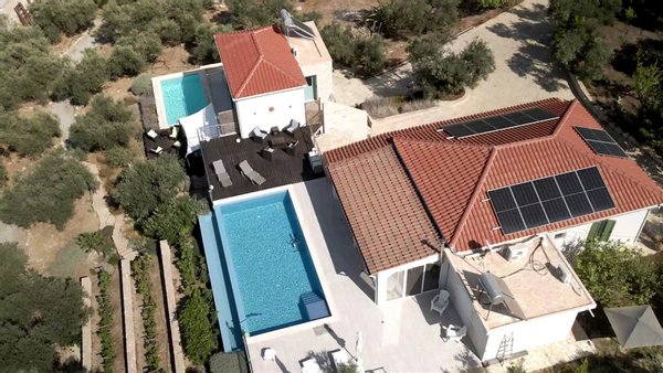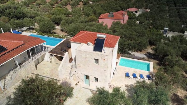 Außen: Die Immobilie ist vollständig von Steinmauern und Zäunen umgeben, mit einem elektrischen Einfahrtstor, das auf die beeindruckende Einfahrt und Parkmöglichkeiten für beide Objekte führt. Jedes Objekt hat seinen eigenen Pool und Terrassen; rund um die Häuser befinden sich schön gestaltete, gestufte Gärten mit Obstbäumen, Gemüsebeeten, einem Weinberg, einer Outdoor-Küche und einem Olivenhain.