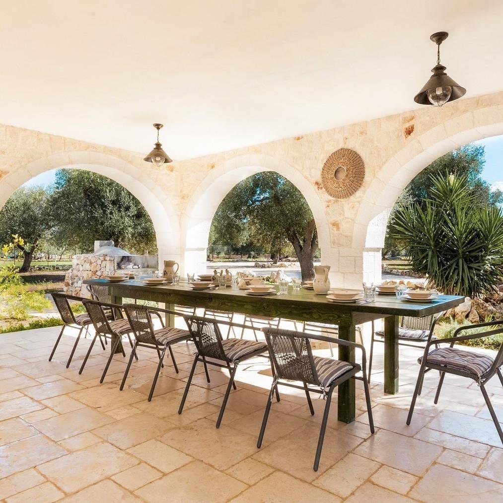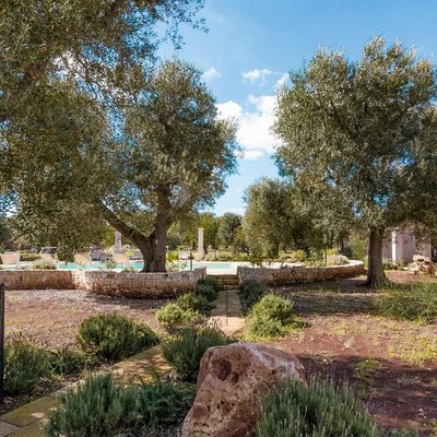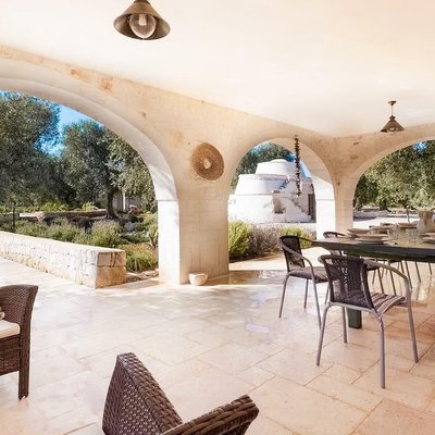 Eingebettet zwischen dem silbernen Grün der Olivenbäume und dem verführerischen Duft der mediterranen Macchia bietet diese wunderschöne Villa in Ostuni einen Rückzugsort voller Luxus und Ruhe. Das Sonnenlicht spiegelt sich auf dem alten Stein,