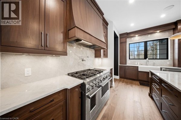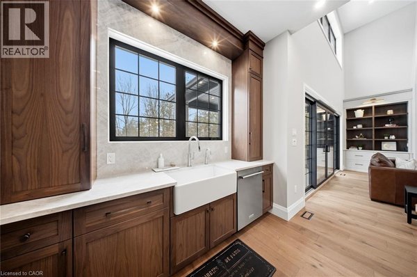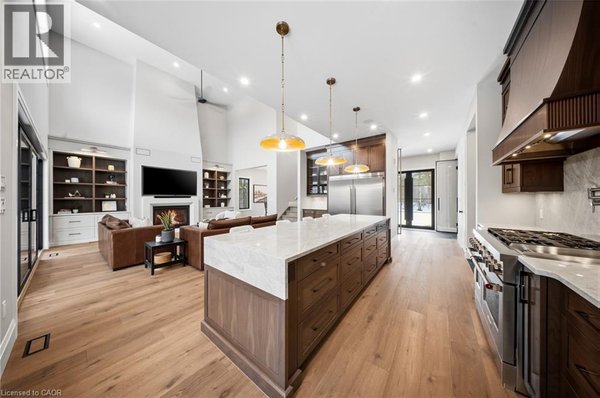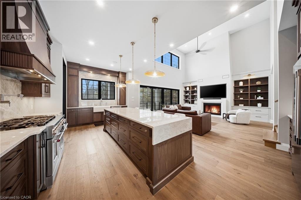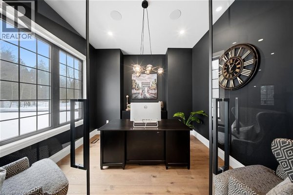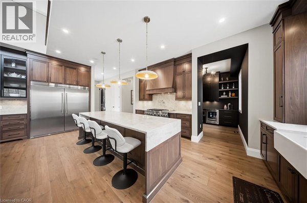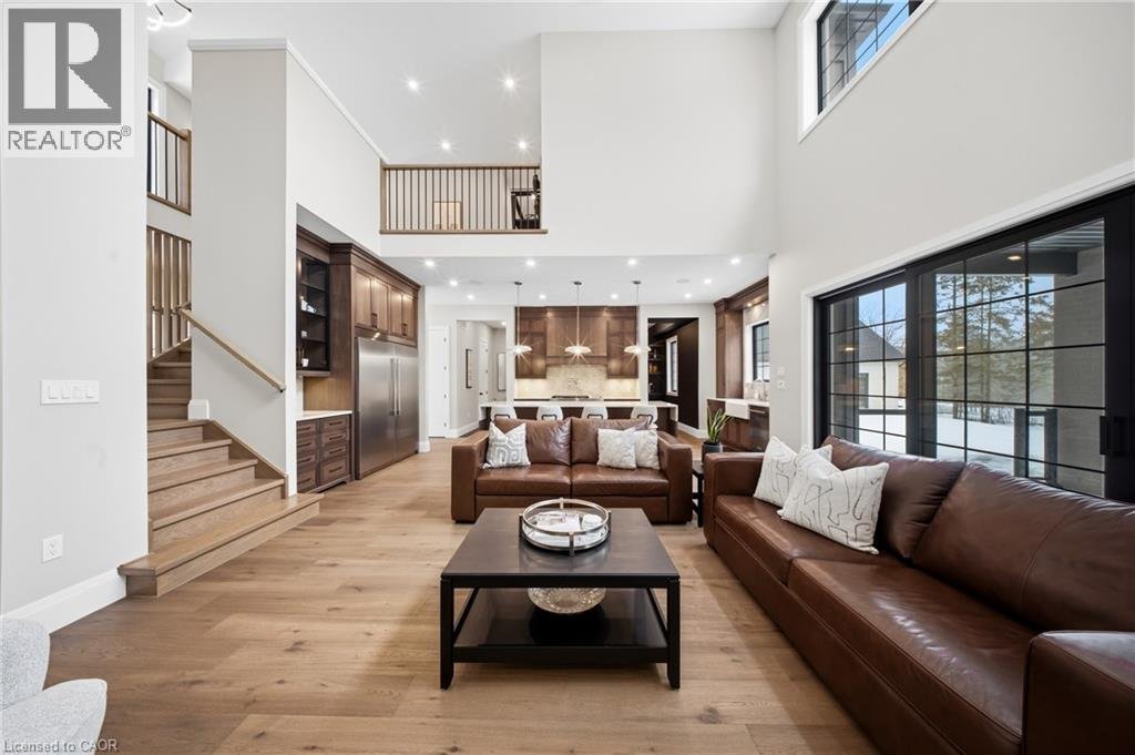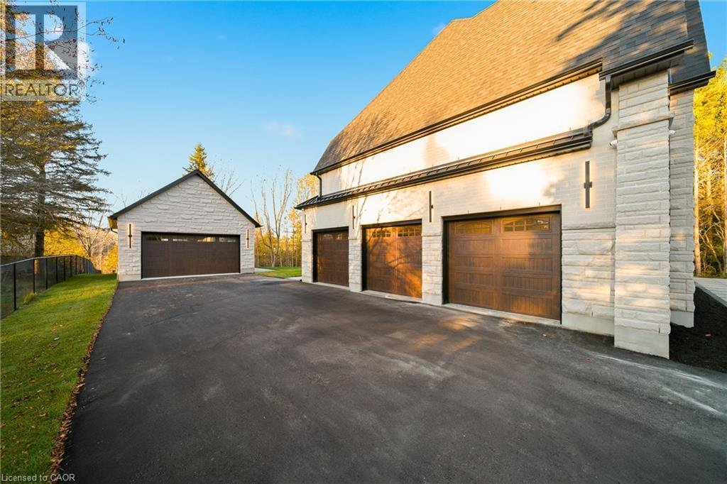 Entfliehen Sie der zeitgenössischen Eleganz auf diesem architektonisch beeindruckenden Anwesen, eingebettet auf einem ruhigen Grundstück von einem Morgen im begehrten Puslinch. Sorgfältig entworfen und meisterhaft gebaut, definiert dieses maßgeschneiderte Haus Luxus neu. Im Inneren setzen hohe Decken, weitläufige Fenster und eine skulpturale Treppe aus weißer Eiche den Ton für ein kultiviertes Wohnen. Natürliches Licht erfüllt das Haus, hebt außergewöhnliche Handwerkskunst und ein müheloses Gefühl von Offenheit hervor. Im Zentrum befindet sich eine Kochküche mit Quarzit-Arbeitsplatten, einer vollwertigen Rückwand und eleganten Barzotti-Schränken. Eine große Kücheninsel mit Sitzplätzen für sechs Personen, integrierte hochwertige Geräte, eine begehbare Butler-Speisekammer und Designer-Beleuchtung. Die Küche führt in einen zweistöckigen großen Raum, in dem ein dramatischer Gaskamin den Raum verankert. Doppelglas-Schiebetüren führen zu einer überdachten Veranda und einem privaten Hinterhof, eine idyllische Kulisse zum Entspannen oder Unterhalten. Ein formeller Speisesaal und ein privates Büro vervollständigen das Hauptgeschoss. Im Obergeschoss vier geräumige Schlafzimmer und drei voll ausgestattete Badezimmer, jedes mit Fußbodenheizung. Die Hauptsuite ist ein ruhiger Rückzugsort mit spa-inspirierten Oberflächen und einem maßgeschneiderten Kleiderschrank. Ein bequem gelegener Waschraum im Obergeschoss verbindet Praktikabilität mit raffiniertem Design. Das Untergeschoss verfügt über polierte Betonböden, ein fertiges Gästebad sowie Rohanlagen für Fußbodenheizung, eine zukünftige Küche und ein eigenes Bad. Ein Walk-up führt direkt zur vollständig isolierten Dreifachgarage, ergänzt durch eine freistehende Doppelgarage. Moderne Annehmlichkeiten umfassen 1,5-Gig Glasfaser-Internet und integriertes Audio in Küche, Büro, Garage und Haupt-En-Suite. Mit Parkmöglichkeiten für bis zu 20 Fahrzeuge, sodass jeder Anlass problemlos gerecht werden kann. Eingewickelt in Stein und Ziegel mit schwarzen Hardie-Board-Akzenten – ein wahres Statement für Design und Handwerkskunst. Nur wenige Minuten vom Highway 6 entfernt mit direktem Zugang zur 401, in der Nähe der Annehmlichkeiten von South Guelph und nur 40 Minuten vom Flughafen Pearson entfernt, vereint diese Siedlung Luxus, Lebensstil und Lage perfekt. (id:57238)