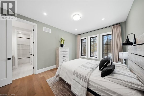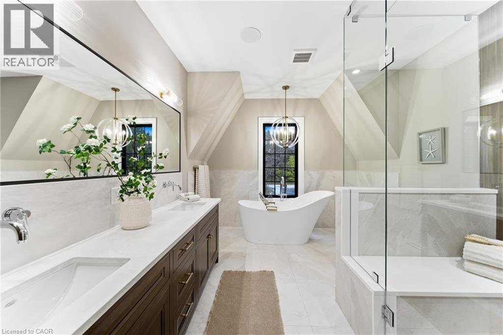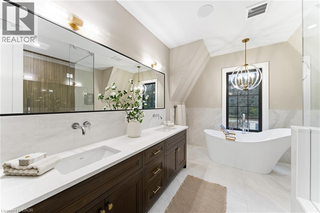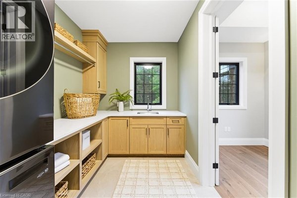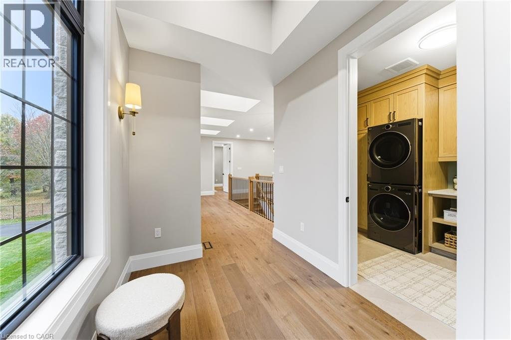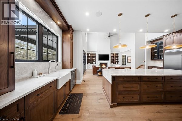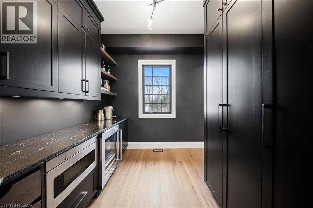 Entfliehen Sie der zeitgenössischen Eleganz auf diesem architektonisch beeindruckenden Anwesen, eingebettet auf einem ruhigen Grundstück von einem Morgen im begehrten Puslinch. Sorgfältig entworfen und meisterhaft gebaut, definiert dieses maßgeschneiderte Haus Luxus neu. Im Inneren setzen hohe Decken, weitläufige Fenster und eine skulpturale Treppe aus weißer Eiche den Ton für ein kultiviertes Wohnen. Natürliches Licht erfüllt das Haus, hebt außergewöhnliche Handwerkskunst und ein müheloses Gefühl von Offenheit hervor. Im Zentrum befindet sich eine Kochküche mit Quarzit-Arbeitsplatten, einer vollwertigen Rückwand und eleganten Barzotti-Schränken. Eine große Kücheninsel mit Sitzplätzen für sechs Personen, integrierte hochwertige Geräte, eine begehbare Butler-Speisekammer und Designer-Beleuchtung. Die Küche führt in einen zweistöckigen großen Raum, in dem ein dramatischer Gaskamin den Raum verankert. Doppelglas-Schiebetüren führen zu einer überdachten Veranda und einem privaten Hinterhof, eine idyllische Kulisse zum Entspannen oder Unterhalten. Ein formeller Speisesaal und ein privates Büro vervollständigen das Hauptgeschoss. Im Obergeschoss vier geräumige Schlafzimmer und drei voll ausgestattete Badezimmer, jedes mit Fußbodenheizung. Die Hauptsuite ist ein ruhiger Rückzugsort mit spa-inspirierten Oberflächen und einem maßgeschneiderten Kleiderschrank. Ein bequem gelegener Waschraum im Obergeschoss verbindet Praktikabilität mit raffiniertem Design. Das Untergeschoss verfügt über polierte Betonböden, ein fertiges Gästebad sowie Rohanlagen für Fußbodenheizung, eine zukünftige Küche und ein eigenes Bad. Ein Walk-up führt direkt zur vollständig isolierten Dreifachgarage, ergänzt durch eine freistehende Doppelgarage. Moderne Annehmlichkeiten umfassen 1,5-Gig Glasfaser-Internet und integriertes Audio in Küche, Büro, Garage und Haupt-En-Suite. Mit Parkmöglichkeiten für bis zu 20 Fahrzeuge, sodass jeder Anlass problemlos gerecht werden kann. Eingewickelt in Stein und Ziegel mit schwarzen Hardie-Board-Akzenten – ein wahres Statement für Design und Handwerkskunst. Nur wenige Minuten vom Highway 6 entfernt mit direktem Zugang zur 401, in der Nähe der Annehmlichkeiten von South Guelph und nur 40 Minuten vom Flughafen Pearson entfernt, vereint diese Siedlung Luxus, Lebensstil und Lage perfekt. (id:57238)