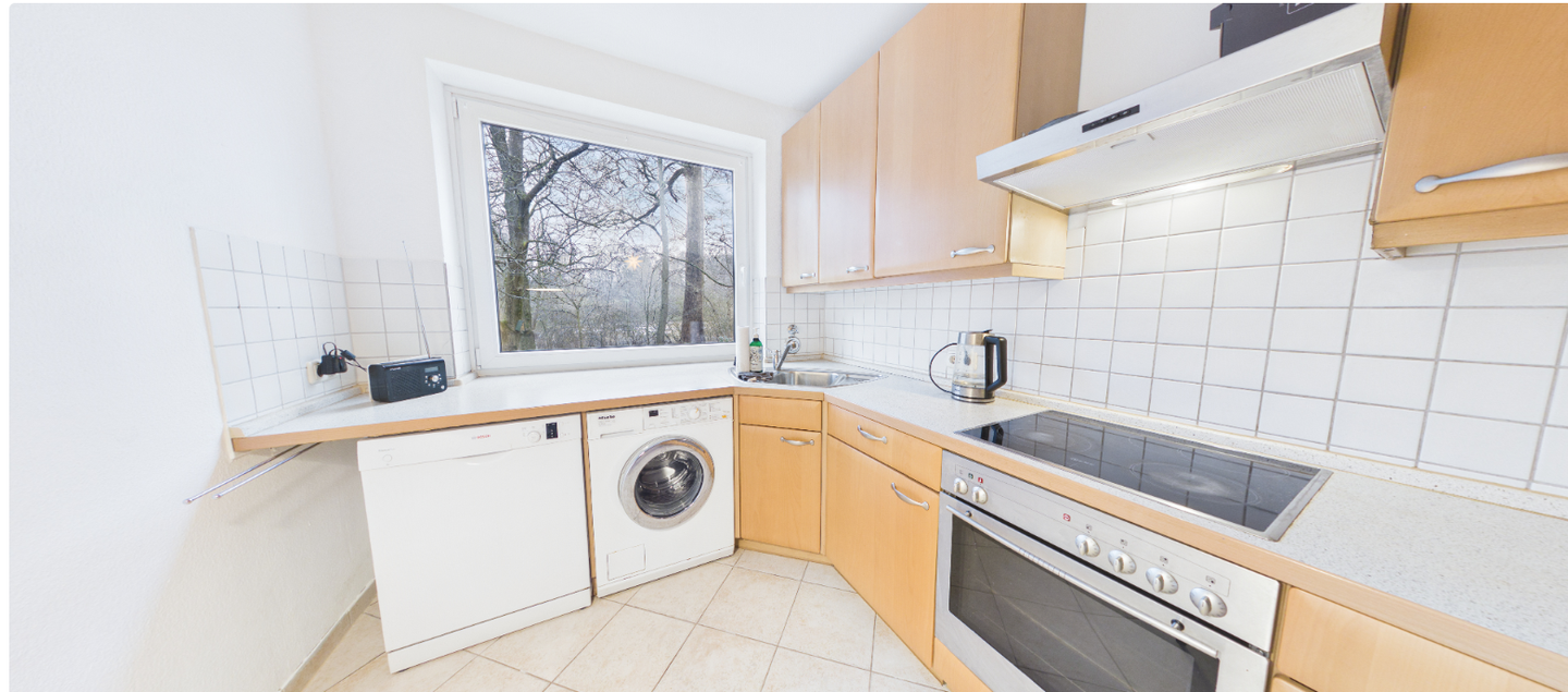 - Küche mit Waschmaschine, Herd + Ceranfeld, Geschirrspüler