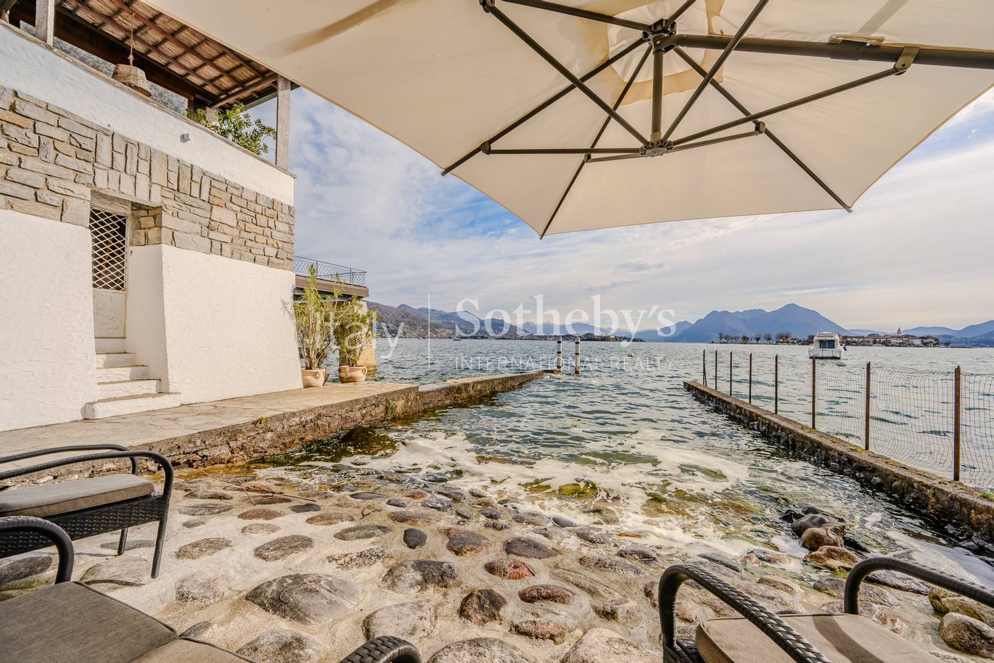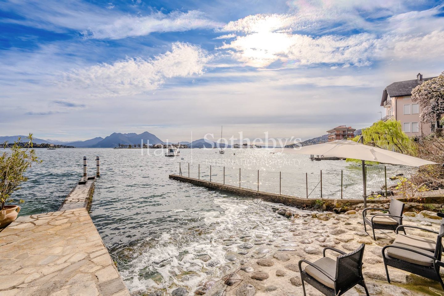 Mit direktem Zugang zum Wasser, privatem Strand und einem herrlichen Blick auf die Borromäischen Inseln bietet diese exklusive Immobilie ein einzigartiges Wohnerlebnis.
