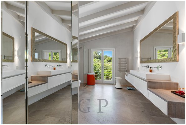 Im Obergeschoss finden Sie 2 weitere Schlafzimmer mit Bädern en Suite, einem weitläufigen Ankleidebereich mit Einbauschränken und einer großen Dachterrasse, die Sie begeistern wird. Der Ausblick ist in alle Richtungen umwerfend.