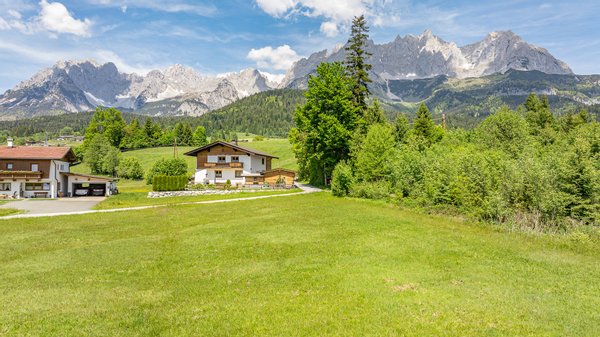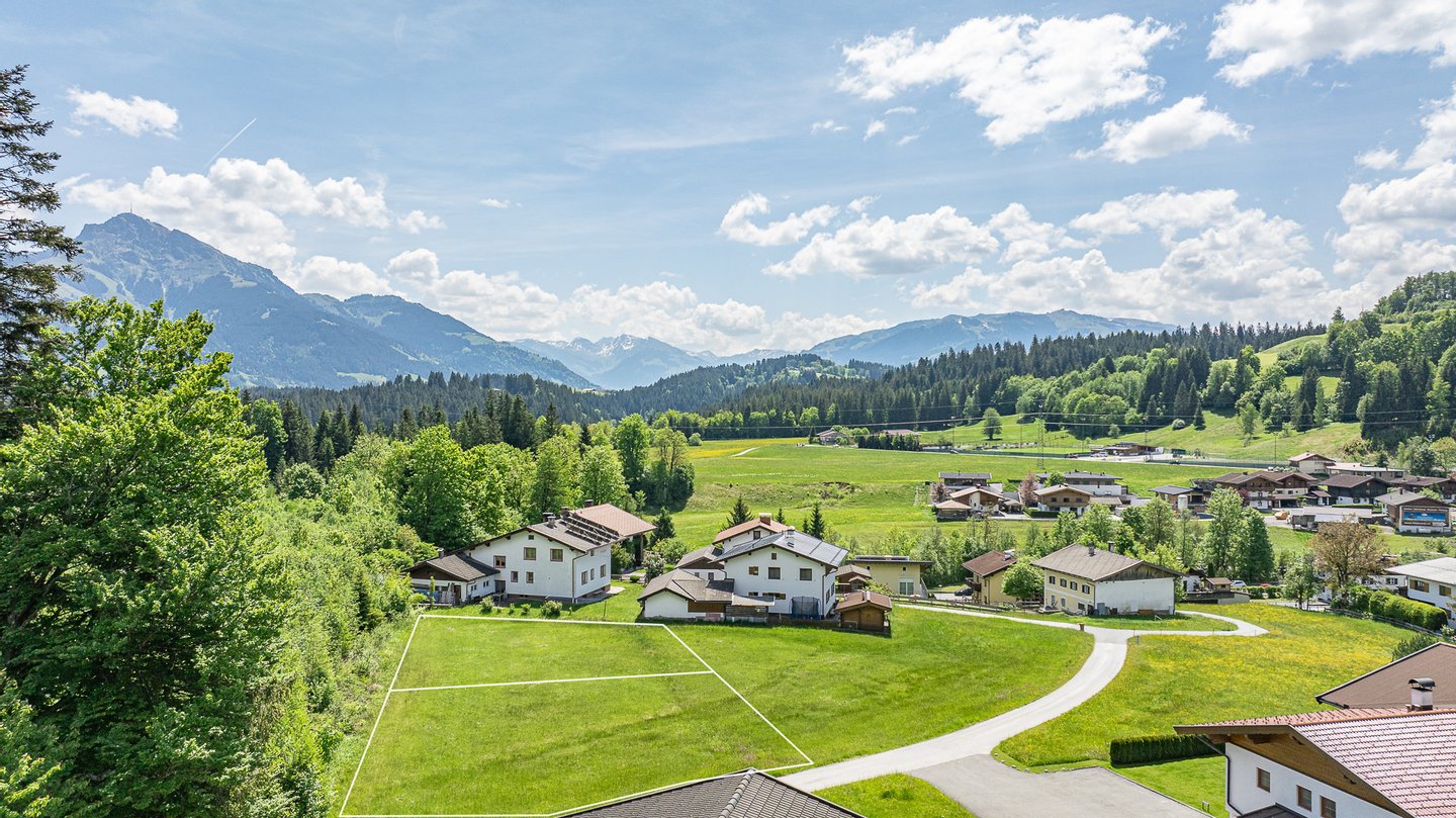 Das Grundstück liegt leicht erhöht auf einem kleinen sonnigen Plateau und bietet einen 360° Panoramablick auf die Kitzbüheler Bergwelt.