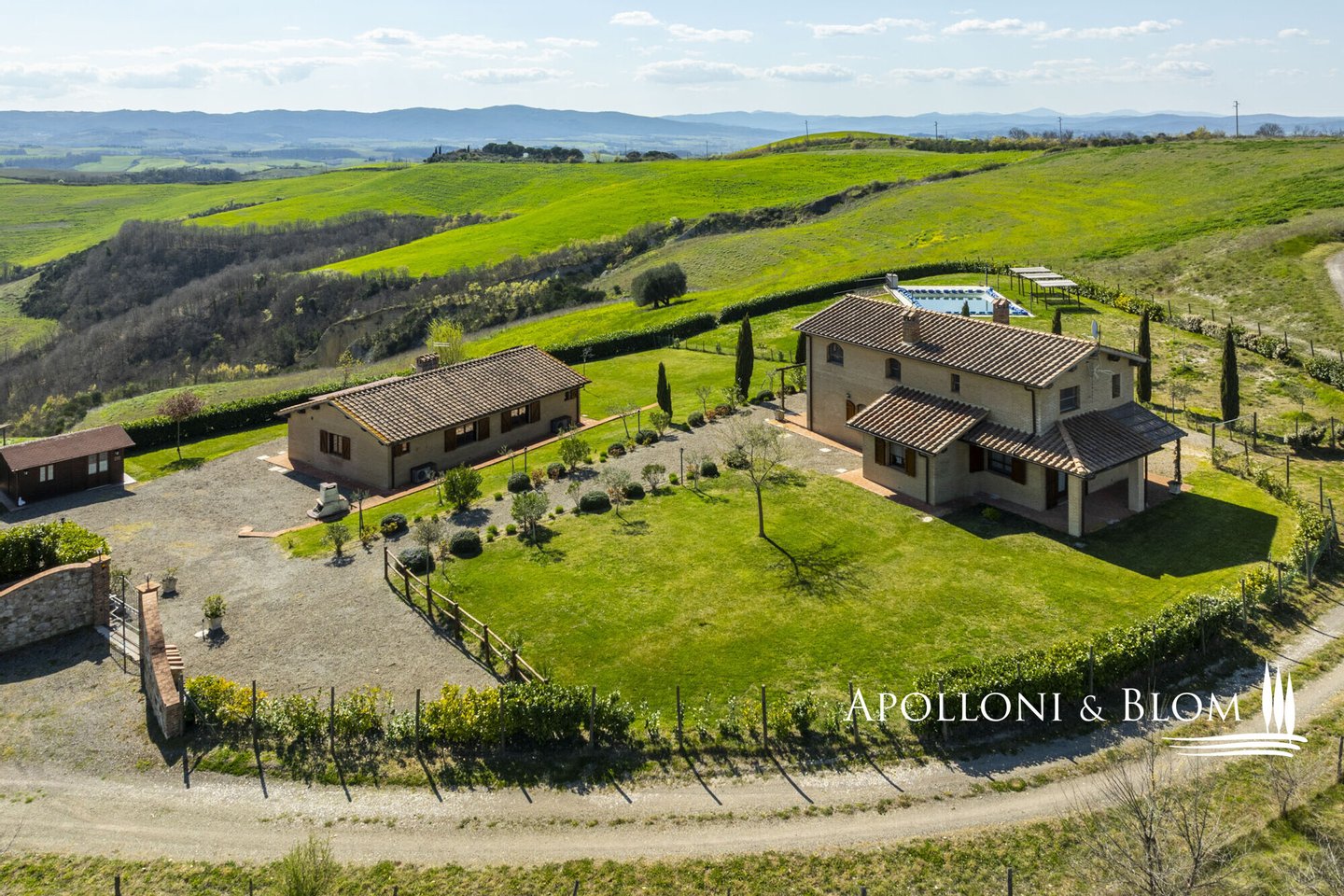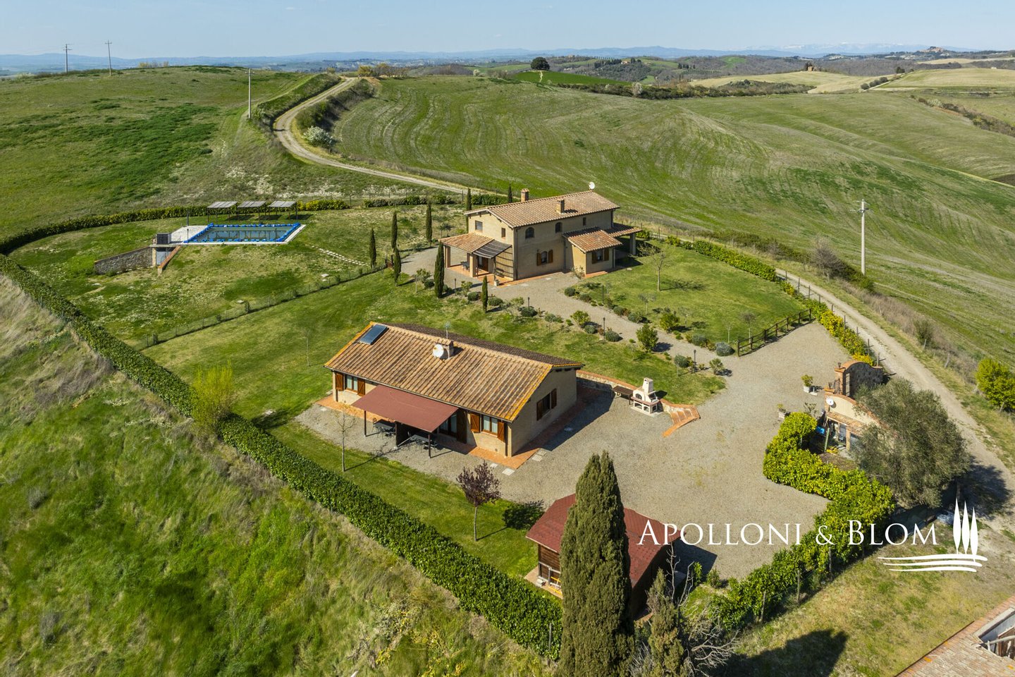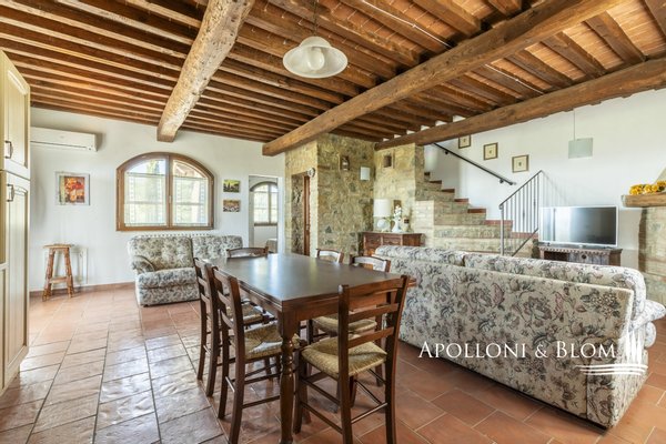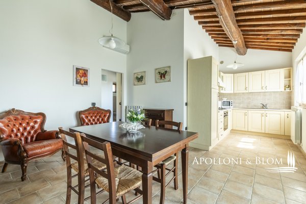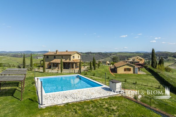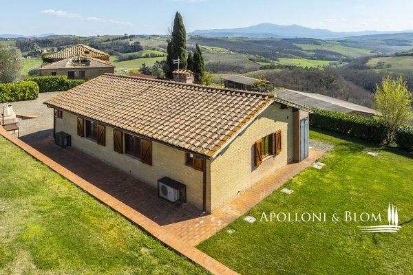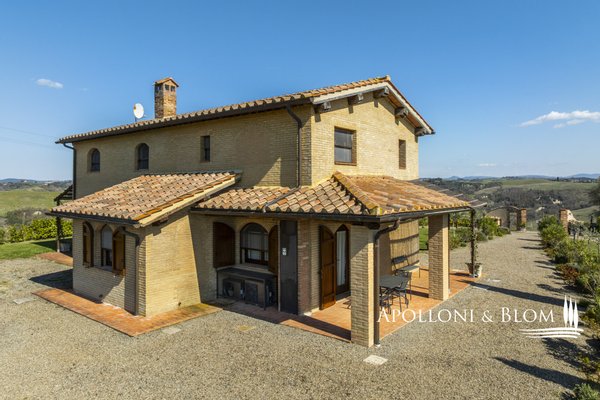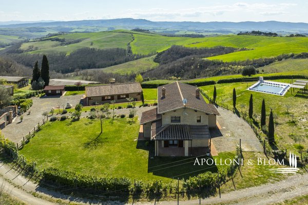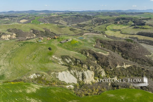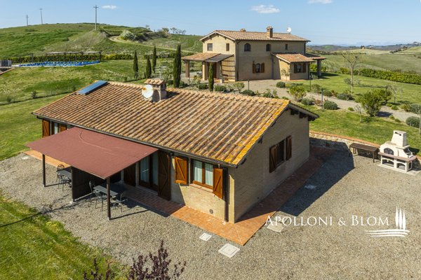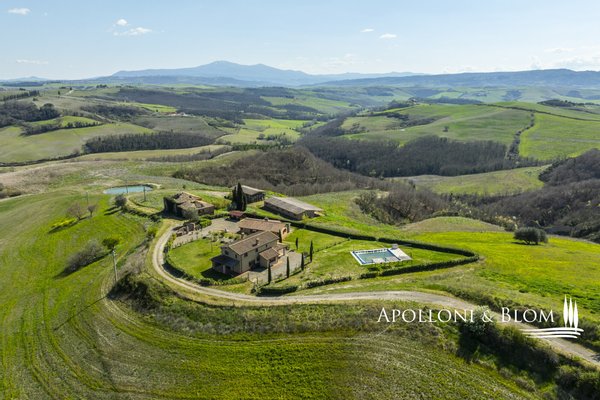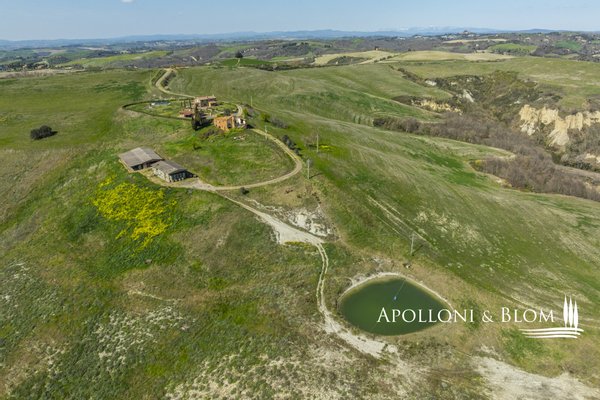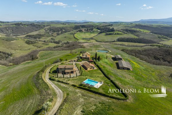 In Panoramalage, mit 126 Hektar Land, Komplex mit Bauernhäusern, Scheunen und Nebengebäuden in der Nähe von Montalcino zu verkaufen. Im authentischen Herzen des Val d'Orcia, nicht weit von Montalcino entfernt, befindet sich ein 126 Hektar großes Anwesen, das einen Bauernhauskomplex von 1198 m² umfasst. Der Kern bewahrt seinen ursprünglichen Charakter mit steinernen Bauernhäusern, Scheunen und Nebengebäuden, von denen einige zu 4 Wohnungen verschiedener Art mit insgesamt 9 Schlafzimmern renoviert wurden. Die Innenräume sind hell und gemütlich, mit freiliegenden Holzbalkendecken, Wohnbereichen mit Kaminen und einem bezaubernden Blick auf die Landschaft. Alle Zimmer sind klimatisiert. Im Außenbereich erstreckt sich der Garten in Kontinuität mit der Landschaft und begleitet den Blick zum Swimmingpool, der sich elegant in die Umgebung einfügt und perfekt ausgerichtet ist, um das Licht und die Sonnenuntergänge zu genießen, für die dieser Teil der Toskana berühmt ist. Das Anwesen wird durch eine Reihe von landwirtschaftlichen Nebengebäuden vervollständigt, darunter Scheunen, Schuppen und ein Stall mit Remise, die das Potenzial des Anwesens erweitern und vielseitige Räume für landwirtschaftliche und pferdesportliche Aktivitäten oder zusätzliche Einheiten für die Nutzung im Agrotourismus bieten. Ein gemeinsames Nebengebäude bietet weitere Verwertungsmöglichkeiten im Einklang mit einer Entwicklungsvision des Anwesens. Das Land bietet 86 Hektar Ackerland, 6 Hektar Weideland und 34 Hektar Wald, einen Brunnen und einen privaten See. Die Lage garantiert absolute Privatsphäre und ermöglicht gleichzeitig einen einfachen Zugang zu den Dienstleistungen und den wichtigsten Verkehrsverbindungen, die nur 6 km entfernt sind. Ein Anwesen, das auf elegante Weise den edelsten Geist der toskanischen Landschaft verkörpert, ideal für diejenigen, die einen charmanten Rückzugsort oder eine prestigeträchtige Investition im Herzen einer der ikonischsten Landschaften Italiens suchen.