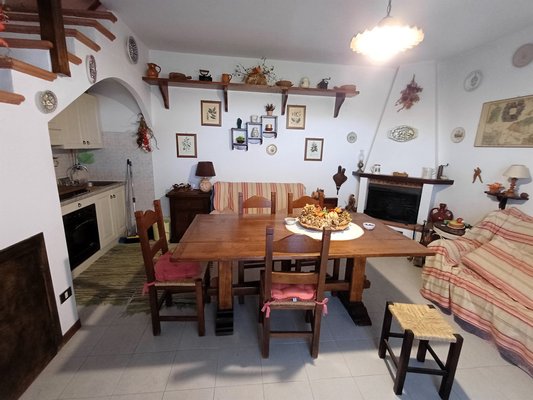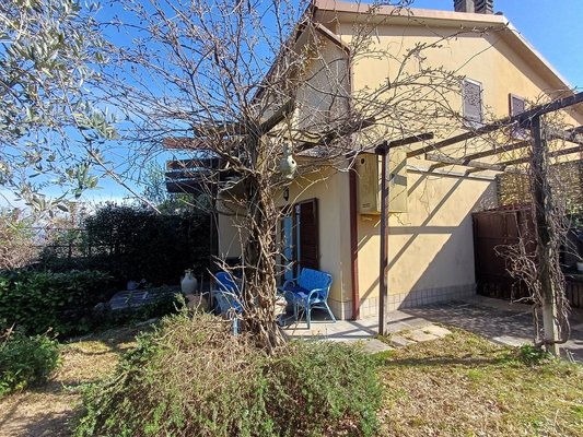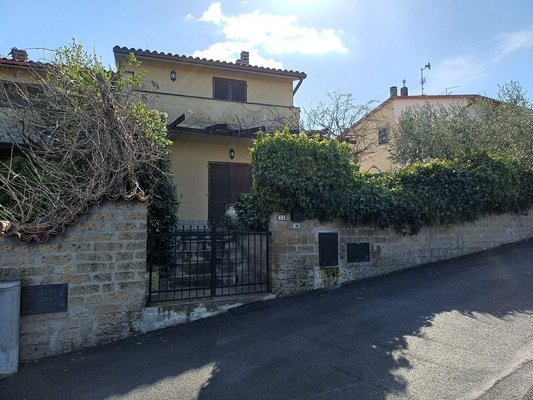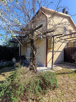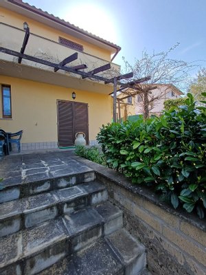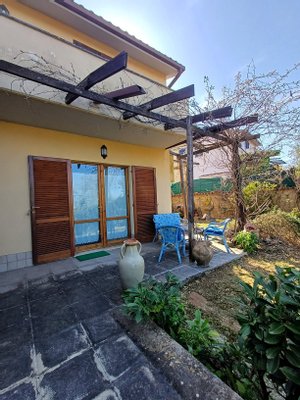 „Der Glyzinie“ - An der beeindruckenden Abtei des malerischen Migliano-Borghi, innerhalb einer ruhigen Villen-Reihenhaus-Residence, die in den späten 90er Jahren erbaut wurde, bieten wir zum Verkauf eine hübsche Eckhausvilla an, auf zwei Ebenen