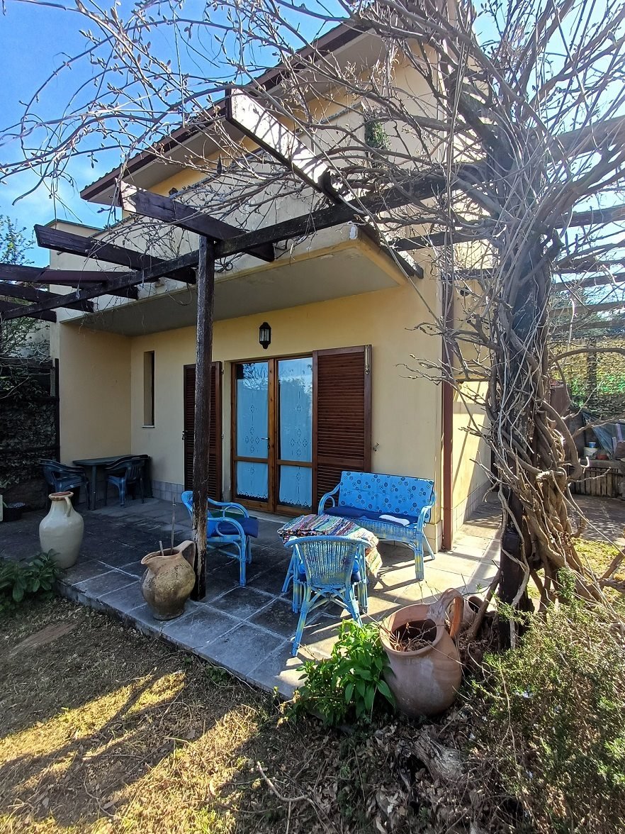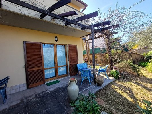 „Der Glyzinie“ - An der beeindruckenden Abtei des malerischen Migliano-Borghi, innerhalb einer ruhigen Villen-Reihenhaus-Residence, die in den späten 90er Jahren erbaut wurde, bieten wir zum Verkauf eine hübsche Eckhausvilla an, auf zwei Ebenen verteilt, verziert mit einem privaten Eckgarten, der Privatsphäre und eine hervorragende Außenwohnqualität garantiert.