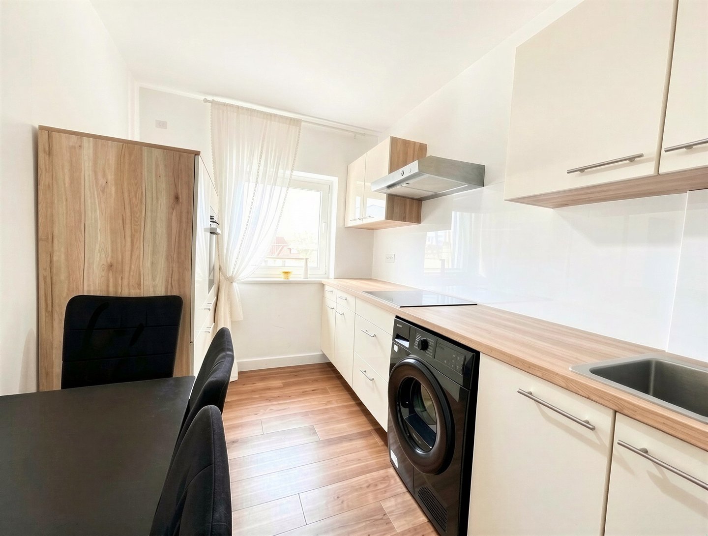 Vom Flur aus gelangen Sie in das geräumige Wohnzimmer, welches Platz für gemütliche Stunden mit Familie und Freunden bietet. Ein Highlight ist der Zugang zum Balkon, auf dem aus Sie herrliche Sommerabende genießen können. Angrenzend an das Wohnzimmer befindet sich die moderne Küche, die zum Kochen und Genießen einlädt.