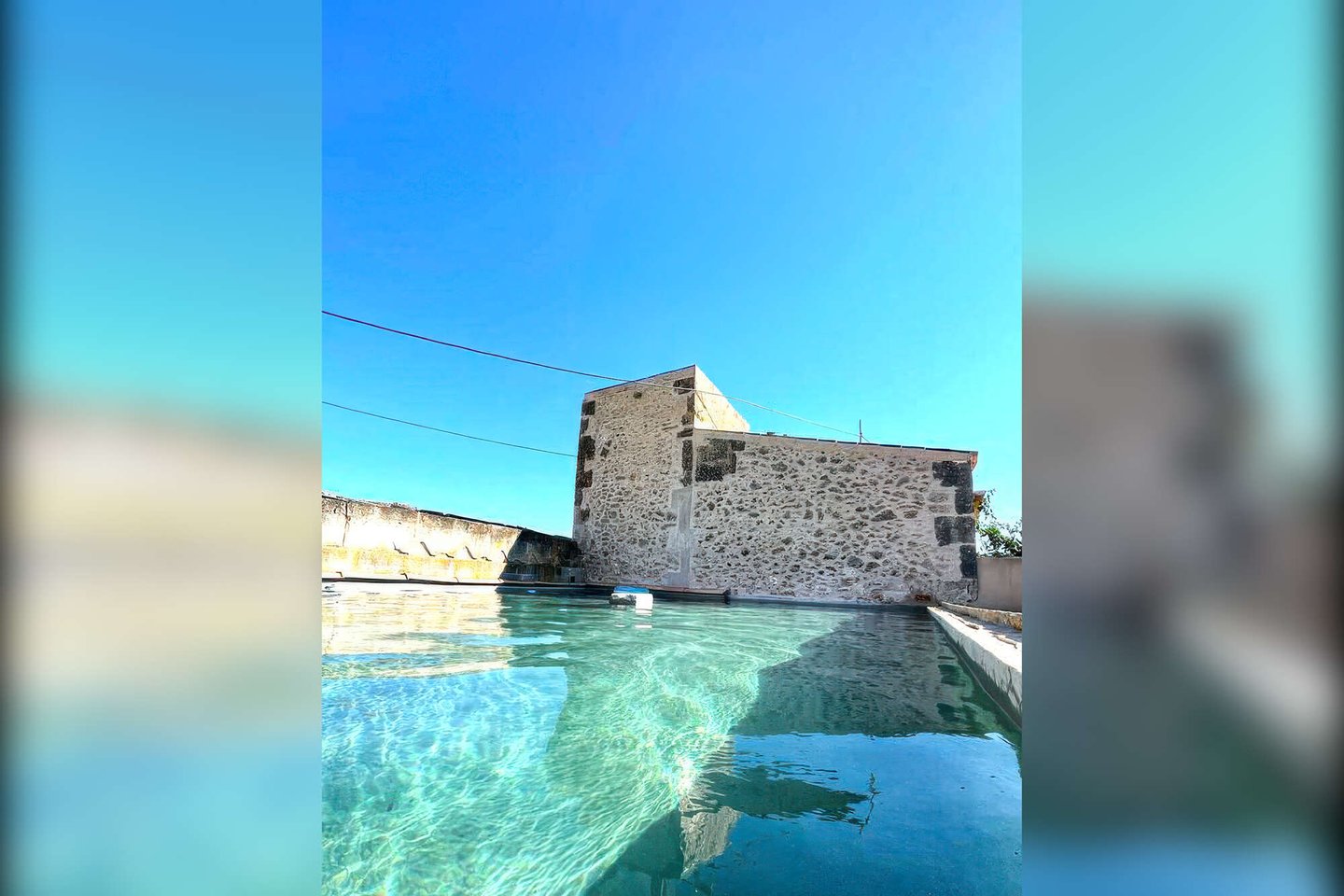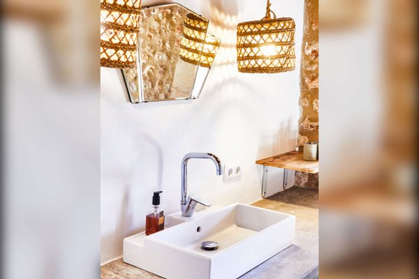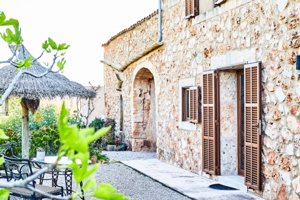 Ein traditioneller Safreig, wurde harmonisch zu einem Pool umgenutzt und ergänzt den wunderschönen, eingewachsenen mediterranen Gartenbereich.