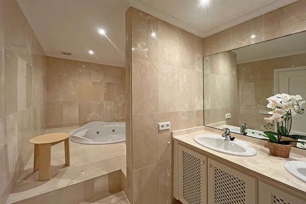 Zur hochwertigen Ausstattung zählen ein Kamin, eine Klimaanlage, eine Zentralheizung sowie Marmorböden, die den gehobenen Charakter der Immobilie zusätzlich betonen. Ein PKW-Stellplatz in der Tiefgarage der Residenz ist im Kaufpreis enthalten.