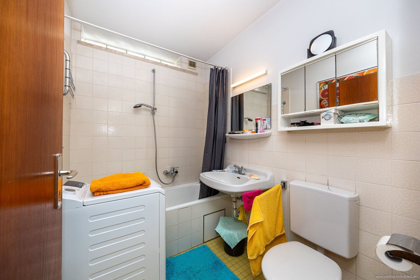 Das großzügige Tageslichtbad mit breitem Fenster ist mit Badewanne, Dusche und Waschbecken ausgestattet, während zudem ein separates WC & ein Abstellraum zusätzlich vorhanden sind.