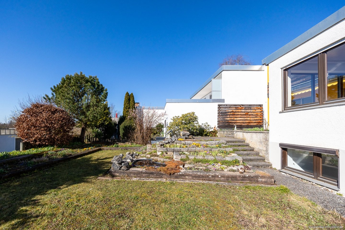 Die angenehme Hanglage des Hauses ermöglicht lichtdurchflutete Räume in allen Geschossen und schafft durch die elegante Split-Level-Architektur auf mehreren Erdgeschossebenen ein offenes Raumgefühl. Die vom Bauherren sorgfältig geplante Süd-/Westausrichtung der großflächigen Fenster, des Gartens, der Terrasse und des Balkons schafft ganztägig sonnenverwöhnte Aufenthaltsbereiche.