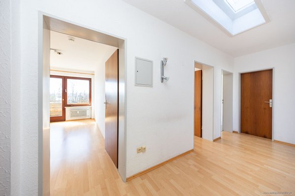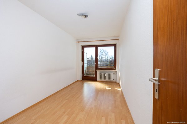 Die drei gleichgroßen Räume eröffnen vielseitige Gestaltungsmöglichkeiten. Dank bodentiefer Balkontüren sind alle Räume lichtdurchflutet & profitieren von der sonnigen Süd-/Westausrichtung. Der überdachte Balkon mit Stromanschluss schafft einen geschützten Rückzugsort mit einmaligem Fernblick.