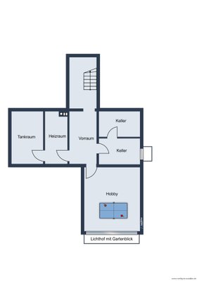 Das geräumige Untergeschoss des Hauses fasst neben zwei Kellerräumen und dem Heizungsraum einen großzügig gestalteten Hobbybereich. Das ca. 13 m² große Souterrainbereich präsentiert sich in Wohnraumqualität und eröffnet vielseitige Nutzungsmöglichkeiten. Die ca. 3,50 m breite Fensterfront zum Lichthof sorgt für ein angenehmes Maß an Tageslicht und gewährt einen reizvollen Blick in den Garten.